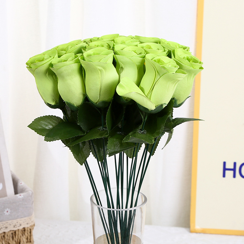 仿真绢花玫瑰花蕾花苞仿真花花束单只玫瑰花仿真花插花花枝把花