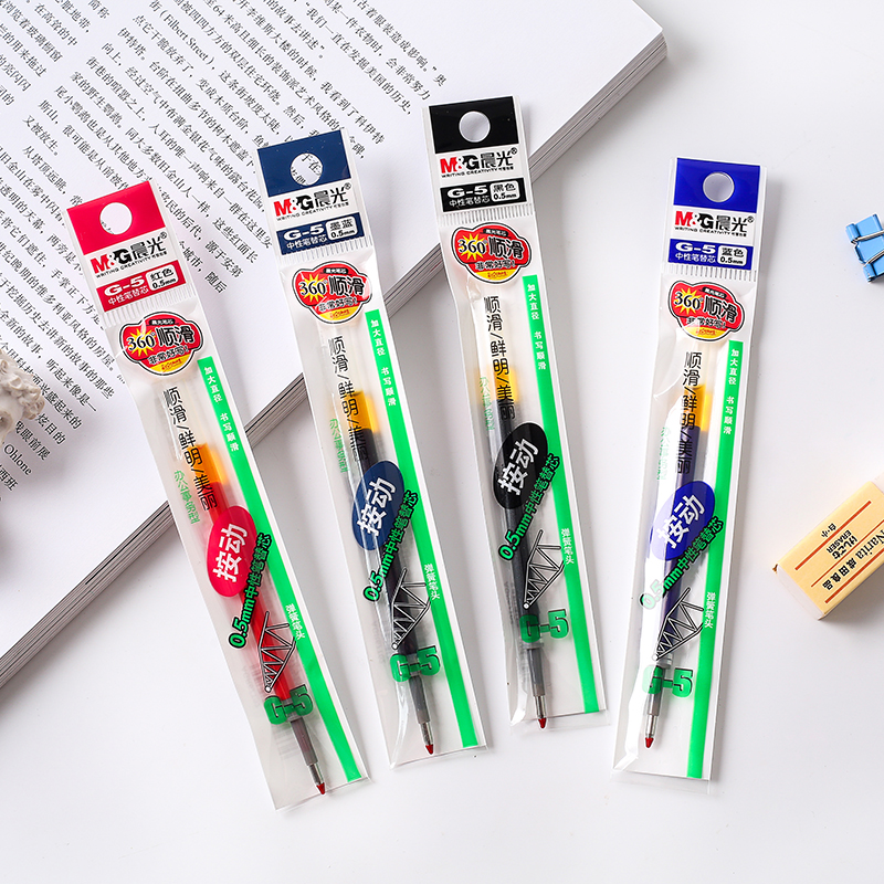 【顺滑】晨光按动笔芯黑笔0.5按动G-5中性笔蓝色不断芯