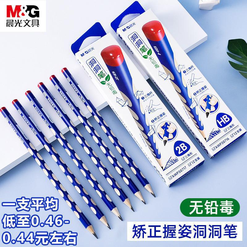Chenguangzhengzi 穴ペン 2B/HB 矯正グリップ姿勢三角木製鉛筆 AWP30717 学生筆記用具