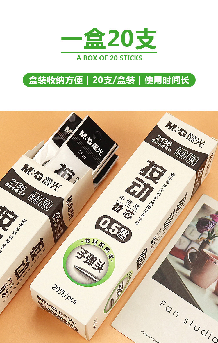 晨光ペン芯0.5ゲルペン芯1.0水性ペン芯0.7フルニードルペン芯ゲルペン替芯単品晨光