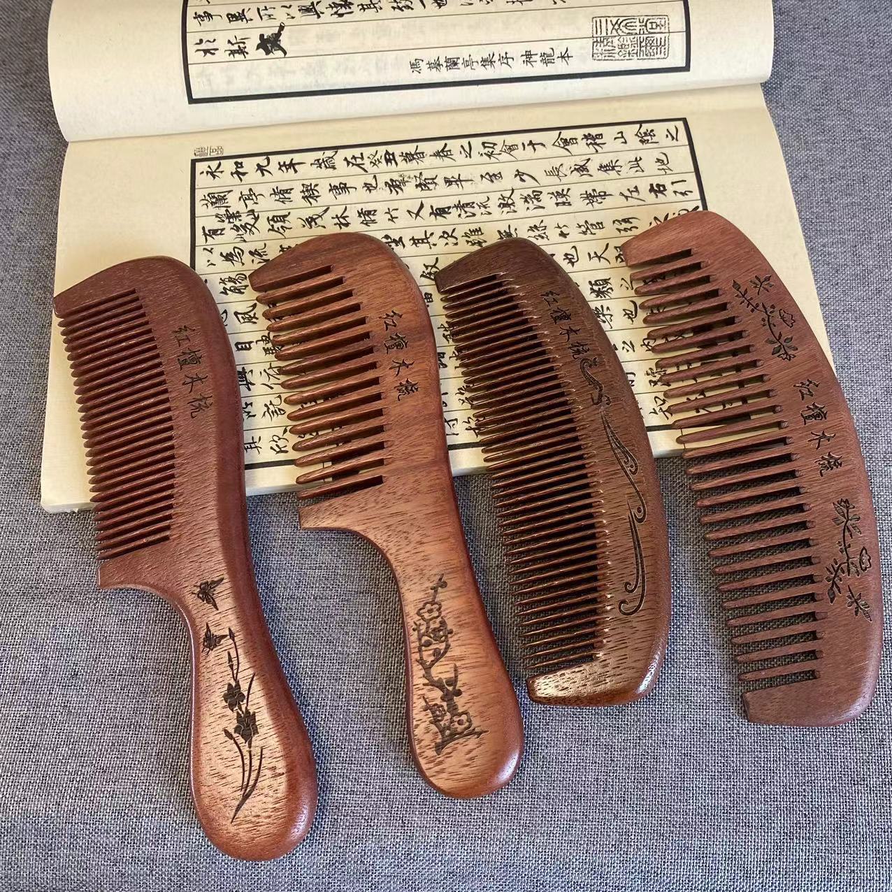 白檀の櫛、紅檀、黒檀、金絲檀の櫛、無垢材の櫛、家庭用ヘアケア櫛、彫刻木工芸