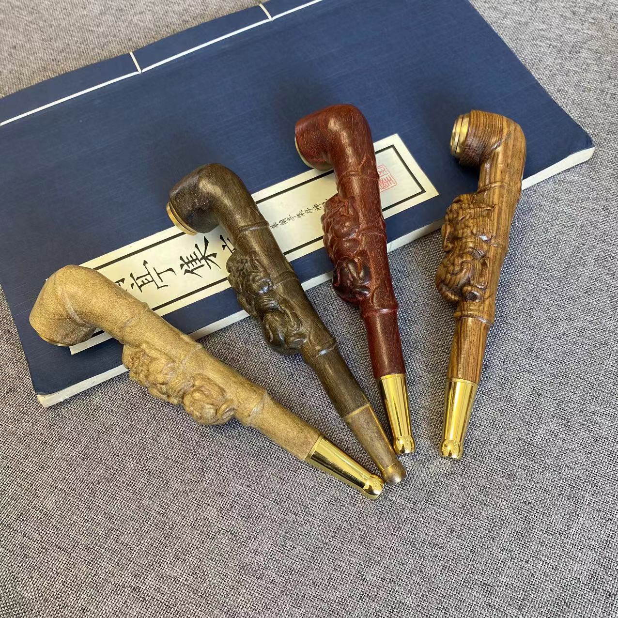 黑檀木烟斗烟嘴木质烟斗过滤烟嘴手把件烟斗可拆洗烟具古朴雕龙