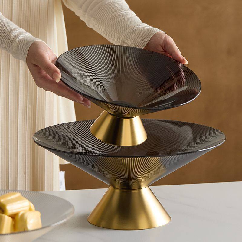 新しい中国式の高い足のガラスの果物の皿は家庭用の客間のお茶のいくつかの置物の大容量の果物の箱のキャンディーの皿を感じます。