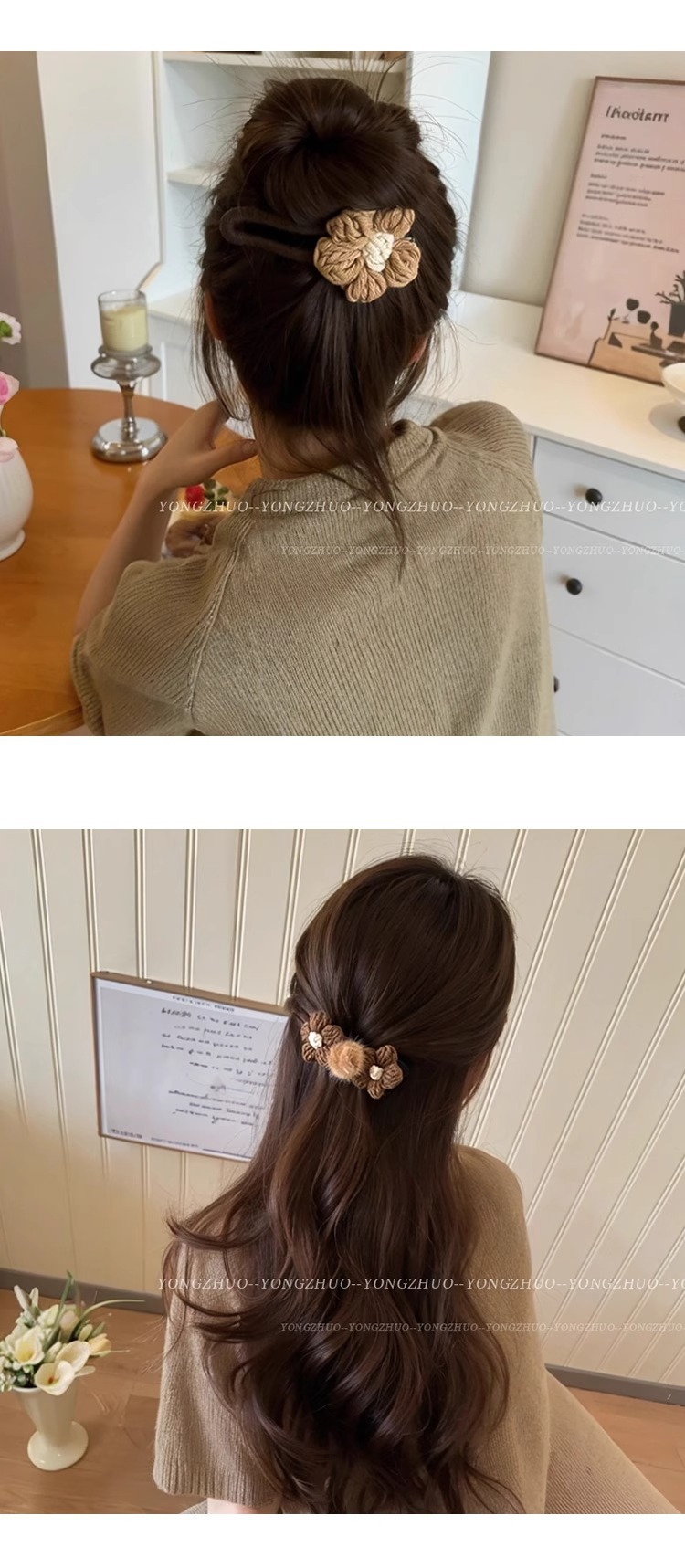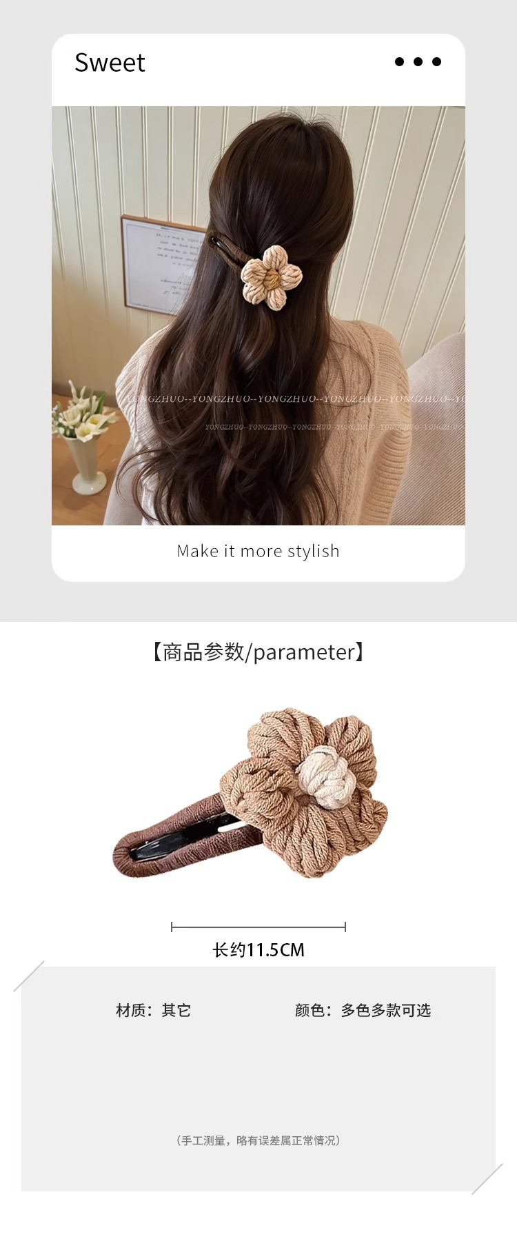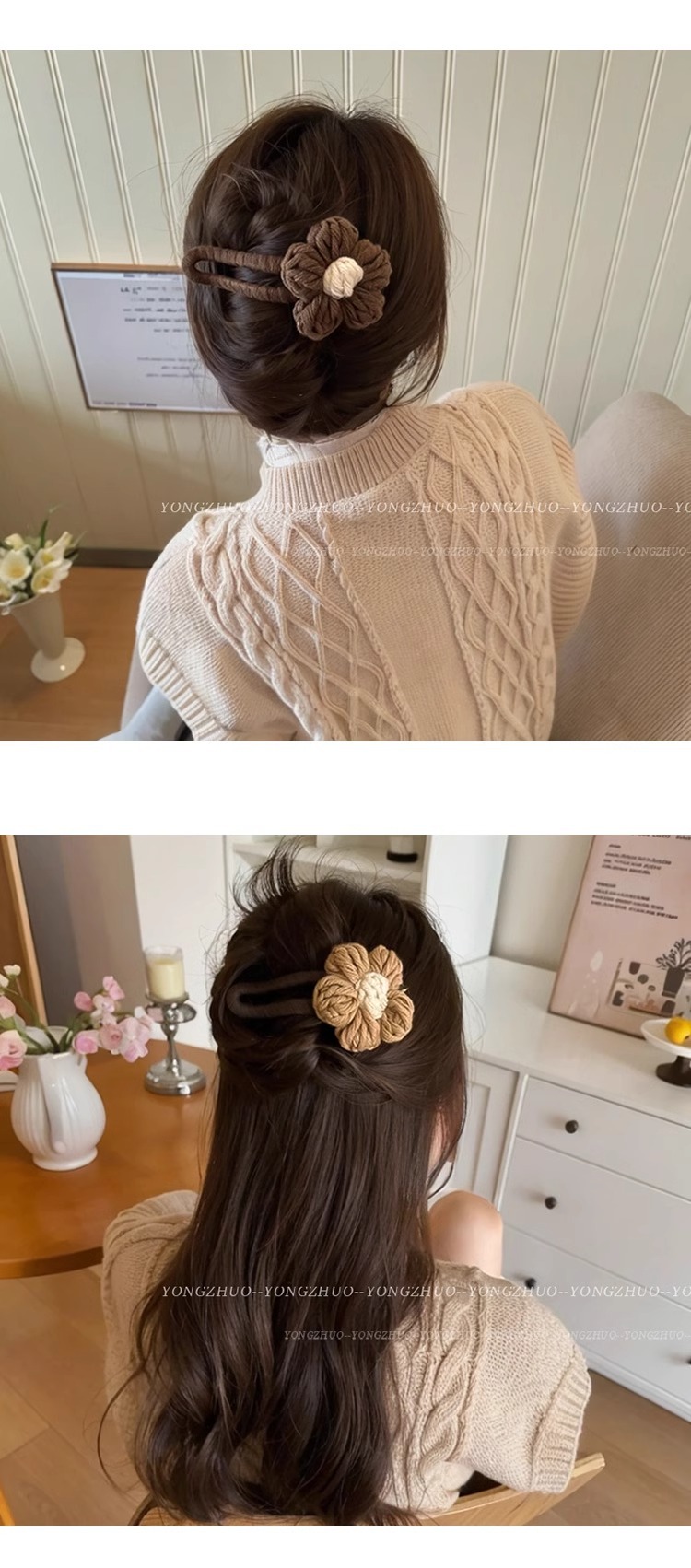 気品毛糸ニット花スナップ女性高級感秋冬ヘアクリップ後頭部半髪サメクリップ