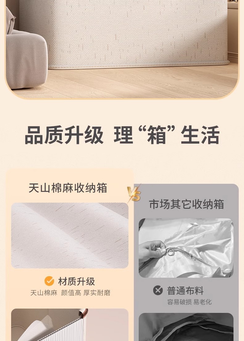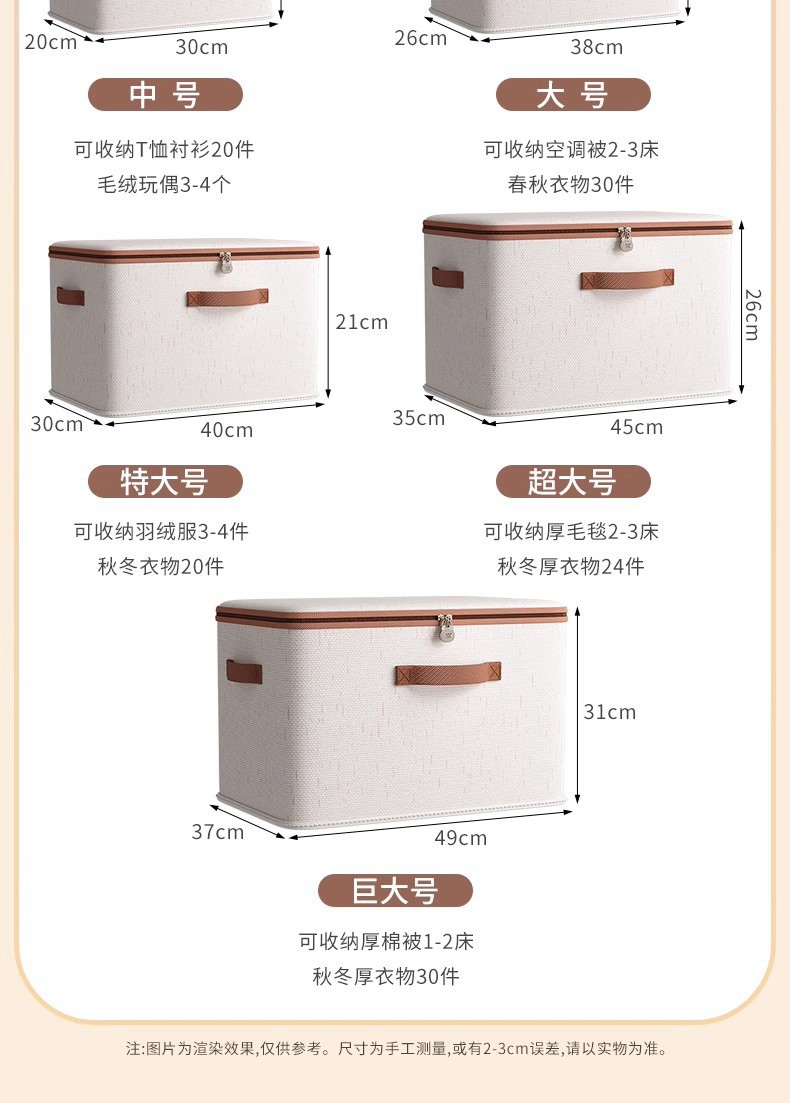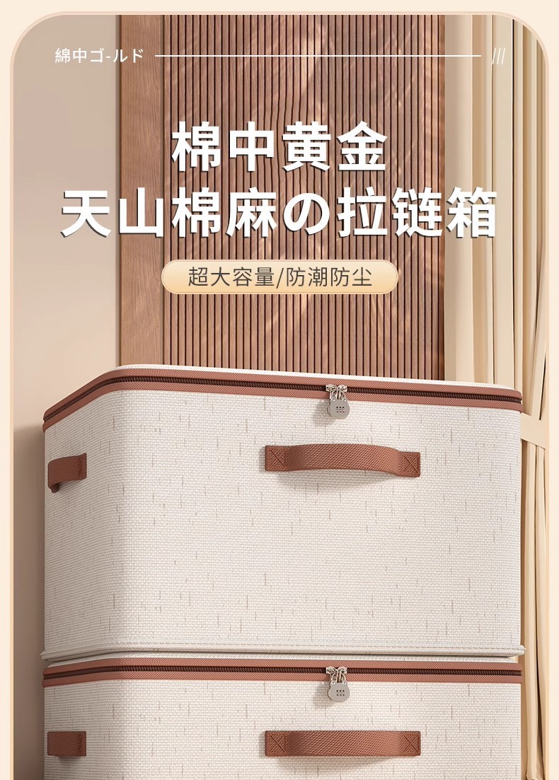 跨境新款带锁天山棉麻拉链收纳箱家用卧室收纳箱衣服带盖收纳衣物