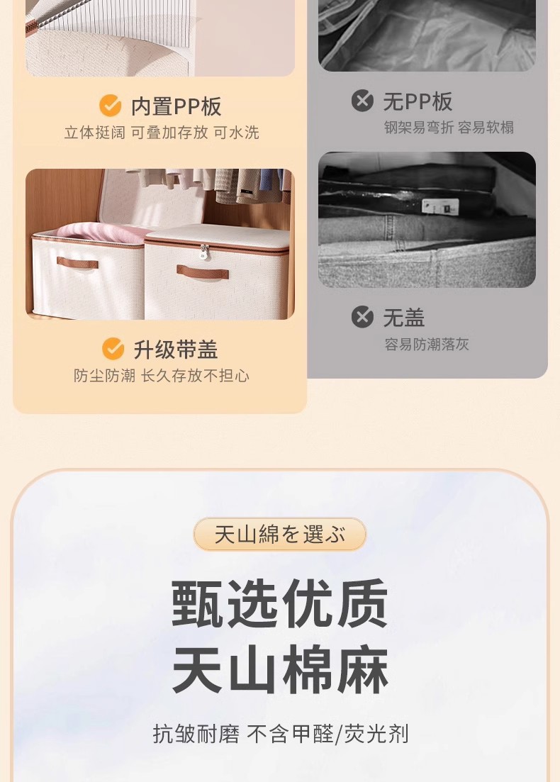 クロスボーダー天山綿とリネンのジッパー収納ボックス蓋付き衣類ホームベッドルーム収納ボックス大容量雑貨収納ボックス