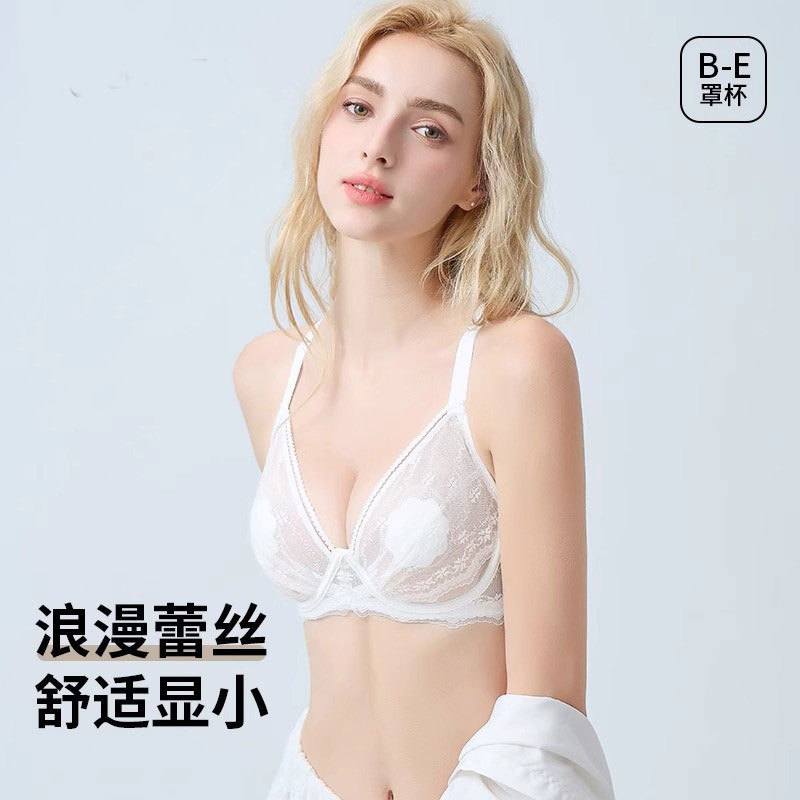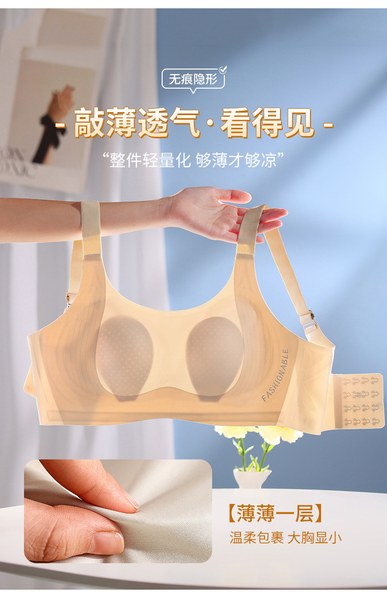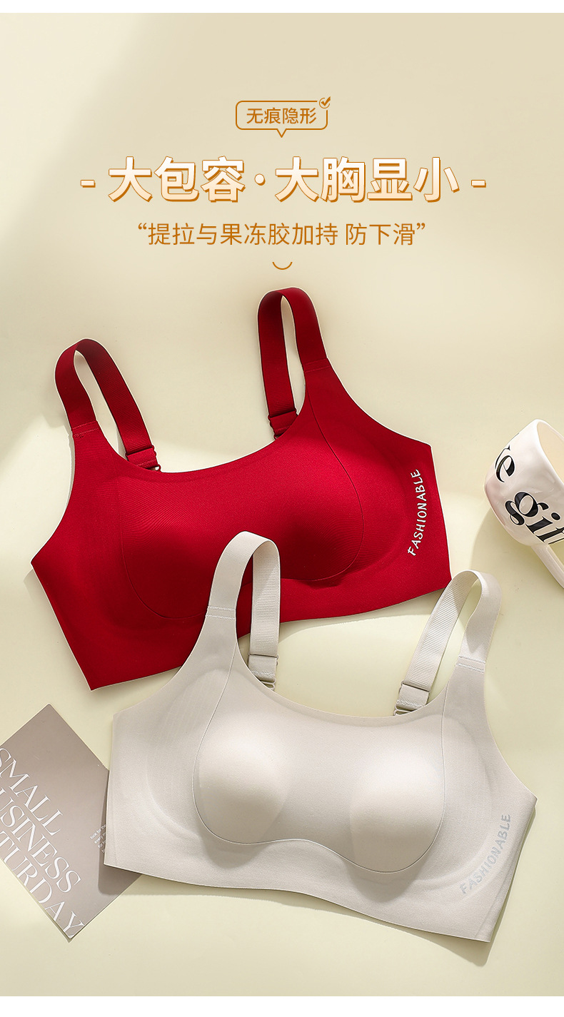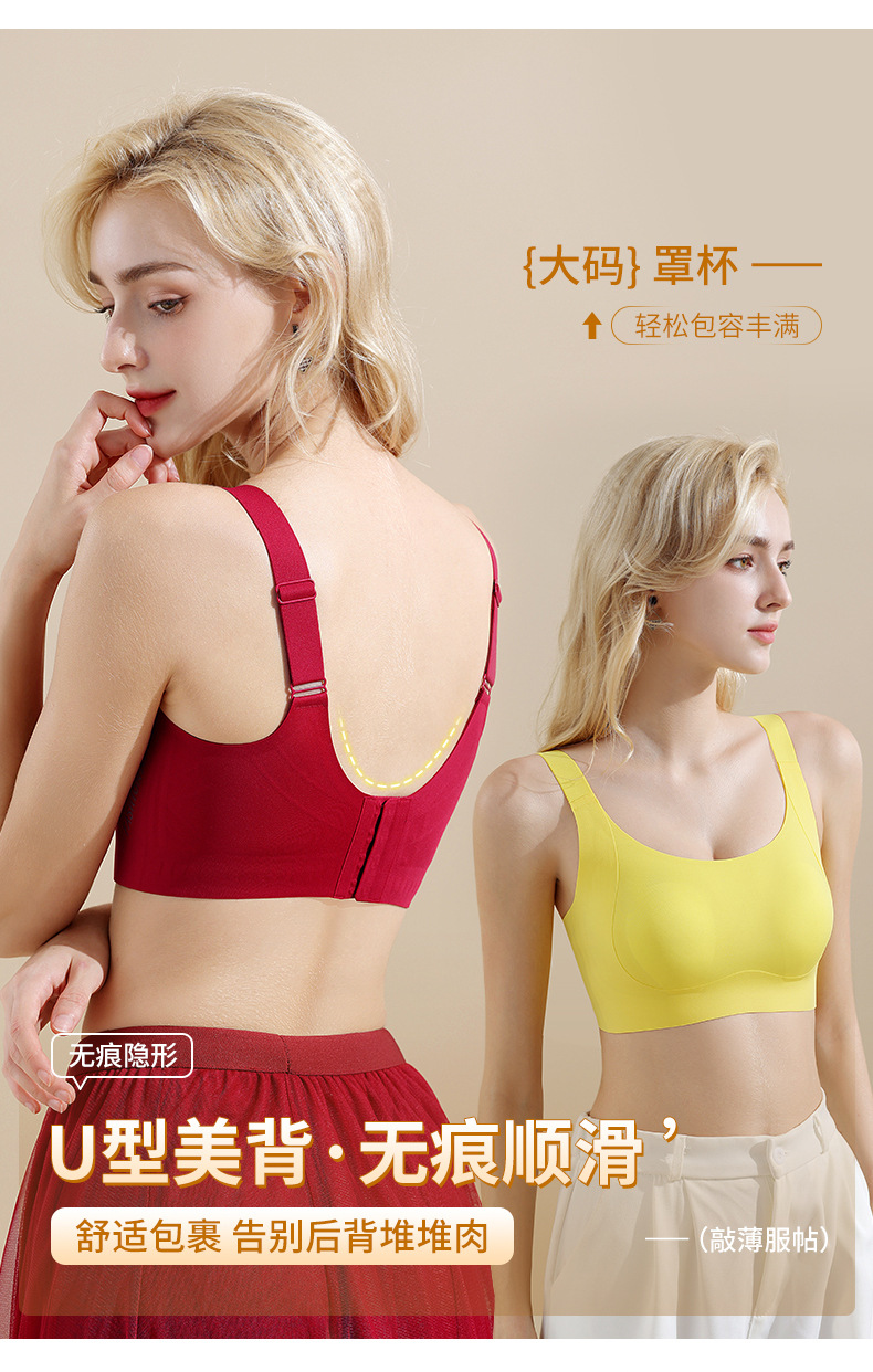 大码无痕内衣女大胸显小胸薄款全罩杯粉底液聚拢防下垂收副乳文胸