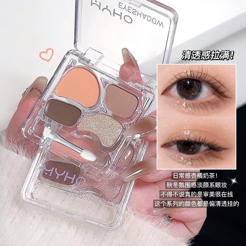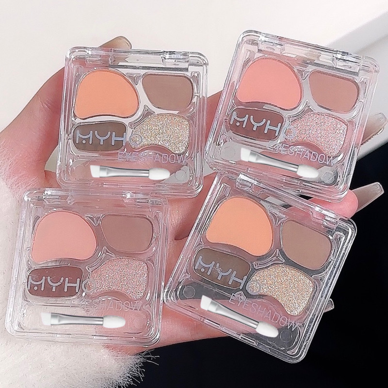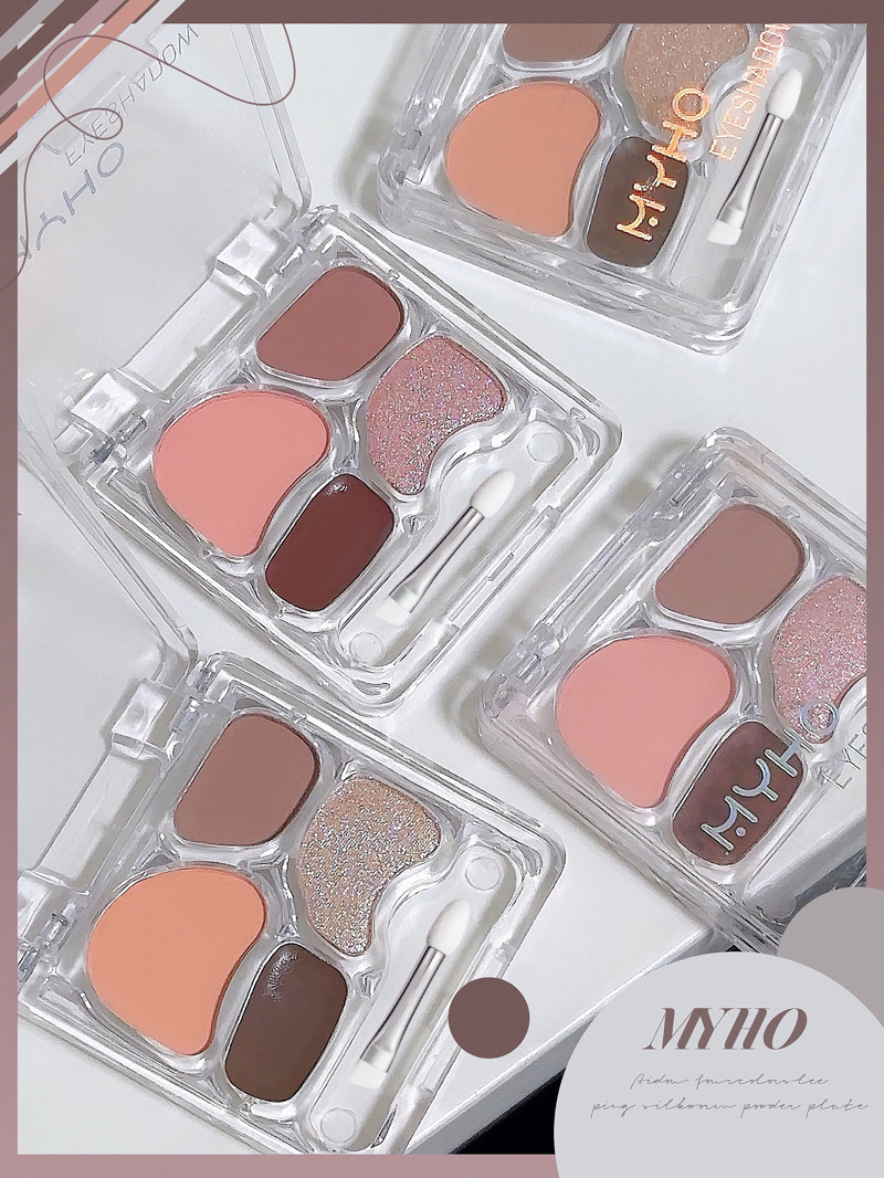 蝶結び六色アイシャドー皿低飽和珠光マットグレーピンク大地色ハイライト頬紅擬似素顔