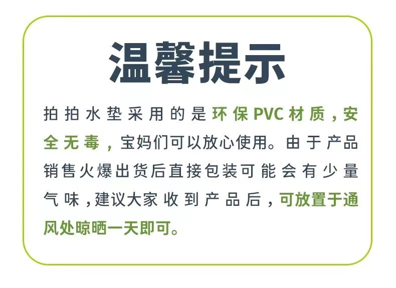 跨境CE认证环保大号加厚婴儿爬行训练注水玩具儿童充气拍拍水垫