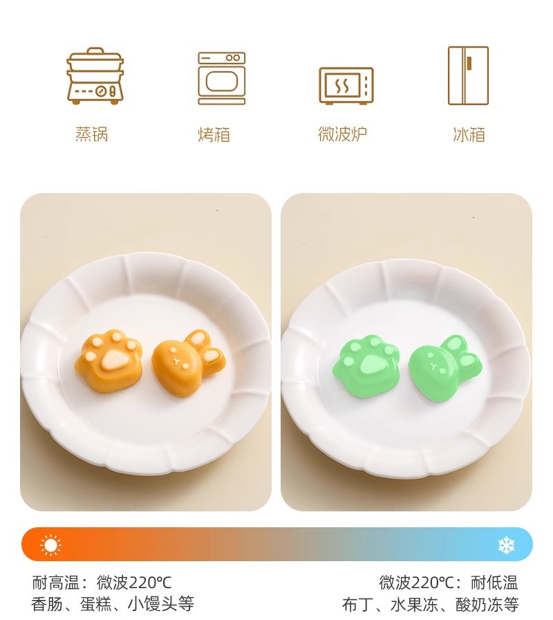 硅胶猫爪宝宝辅食硅胶蒸糕模具食品级果冻冰格奶冻米糕雪糕蛋糕模
