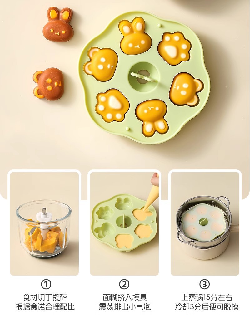 赤ちゃんの補助食シリカゲル金型蒸し餅乳幼児菓子猫爪米餅食品級蒸し工具砥石セット