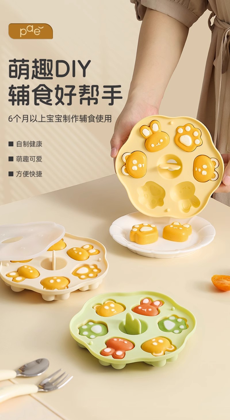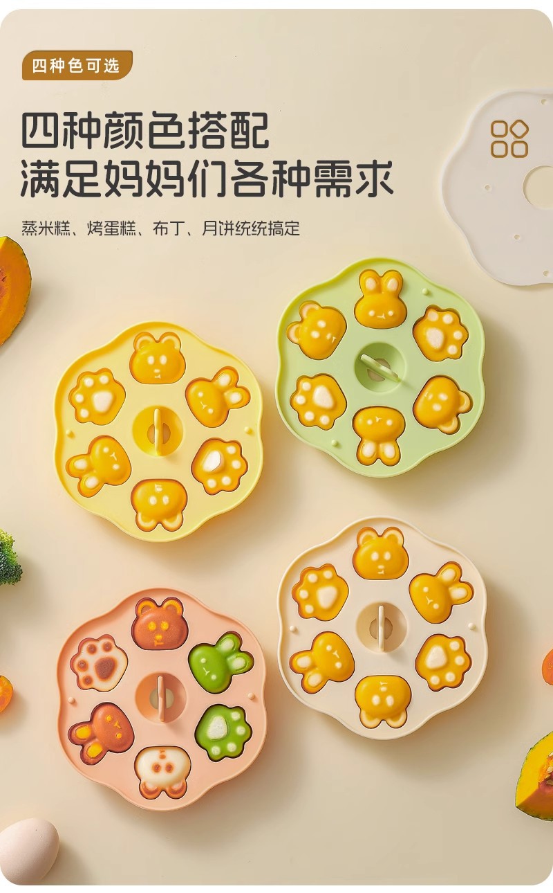 赤ちゃんの補助食品の型は食品級で蒸しられます。赤ちゃんの蒸しケーキの型は高温に耐えられます。