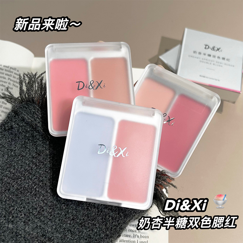 DIXI乳杏半糖の二色の頬紅は日常の薄い化粧が白くてつやつやしています。