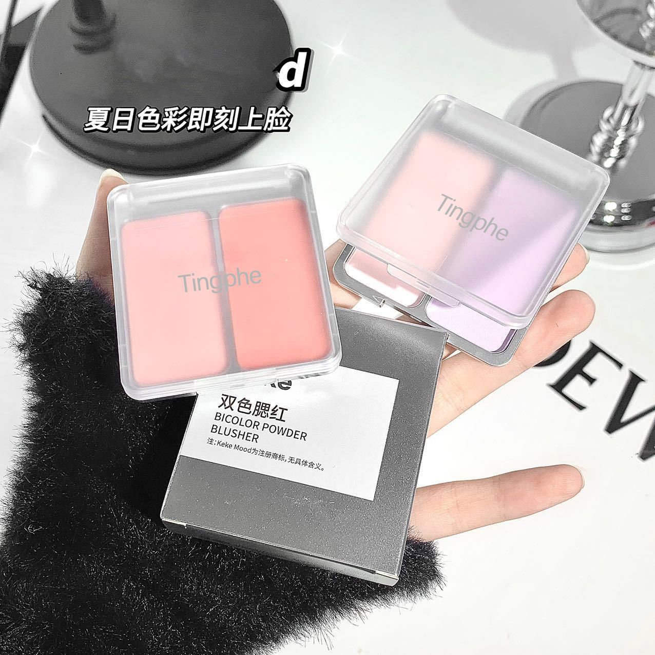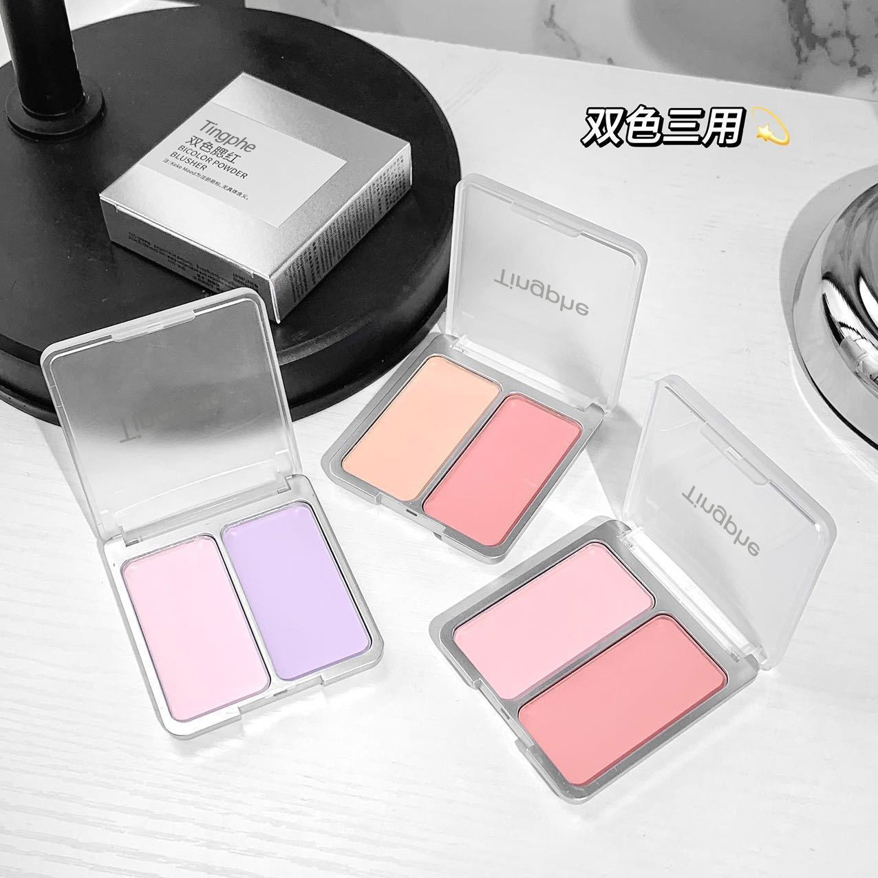 代发包邮~双色腮红低饱和收缩膨胀色腮紫提亮修容学生党平价胭脂