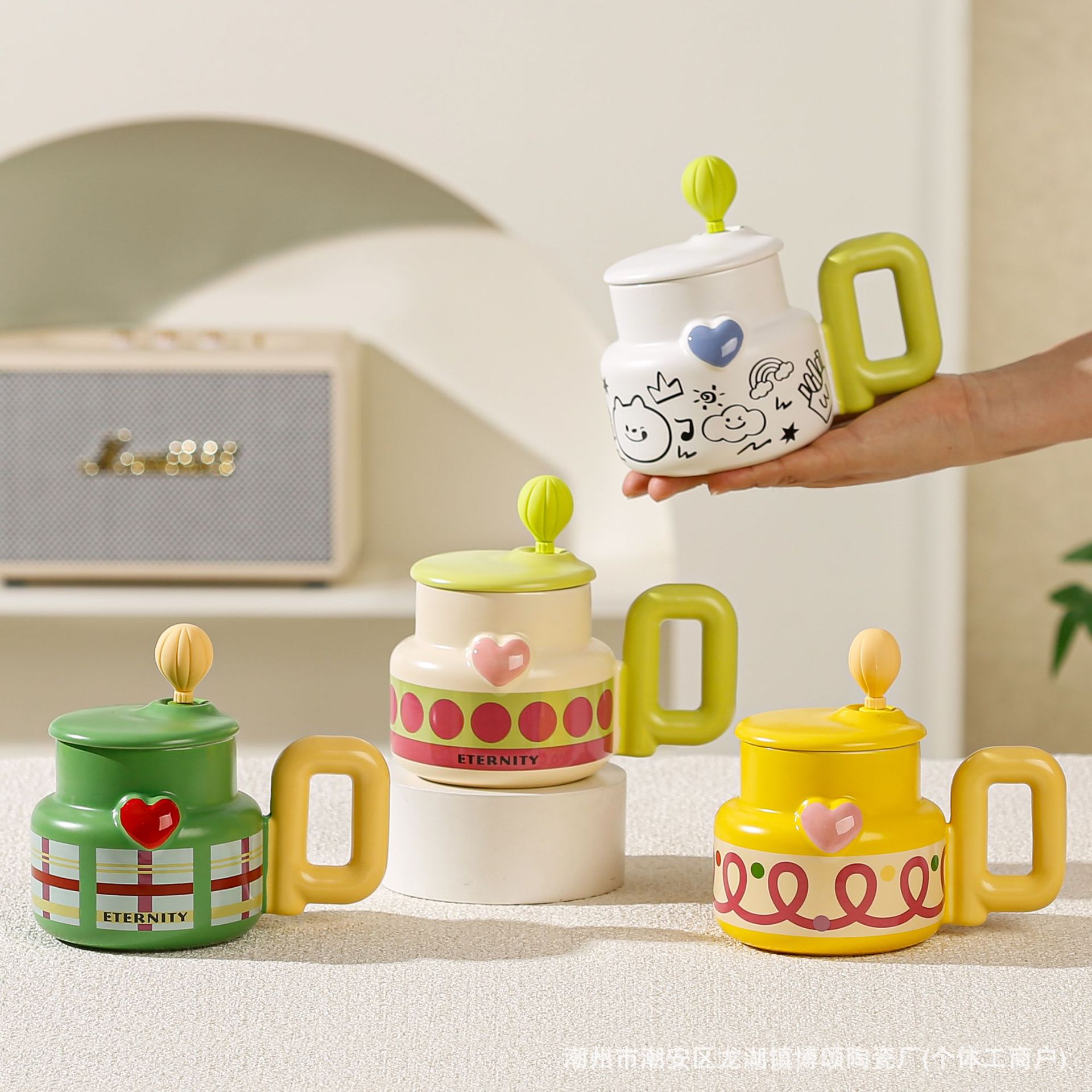 クリエイティブ誕生日ケーキマグカップアニメかわいい蓋付き陶磁器カップカップル誕生日プレゼント水カップお土産