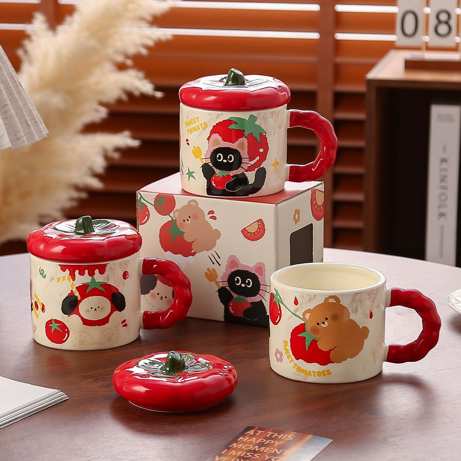 高颜値落書き動物マグカップ漫画陶磁器カップ蓋付き女子誕生日プレゼントカップルカップお土産