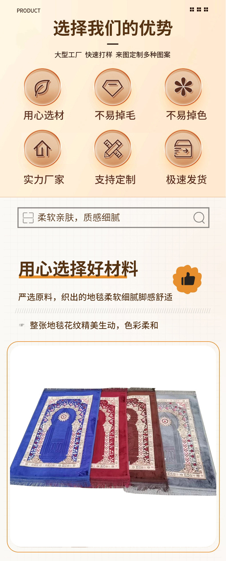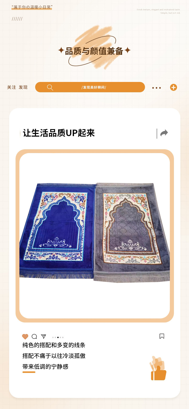 新款超薄可携带便携亚马逊跨礼境拜地毯祈加祷厚告麂皮绒印花垫子