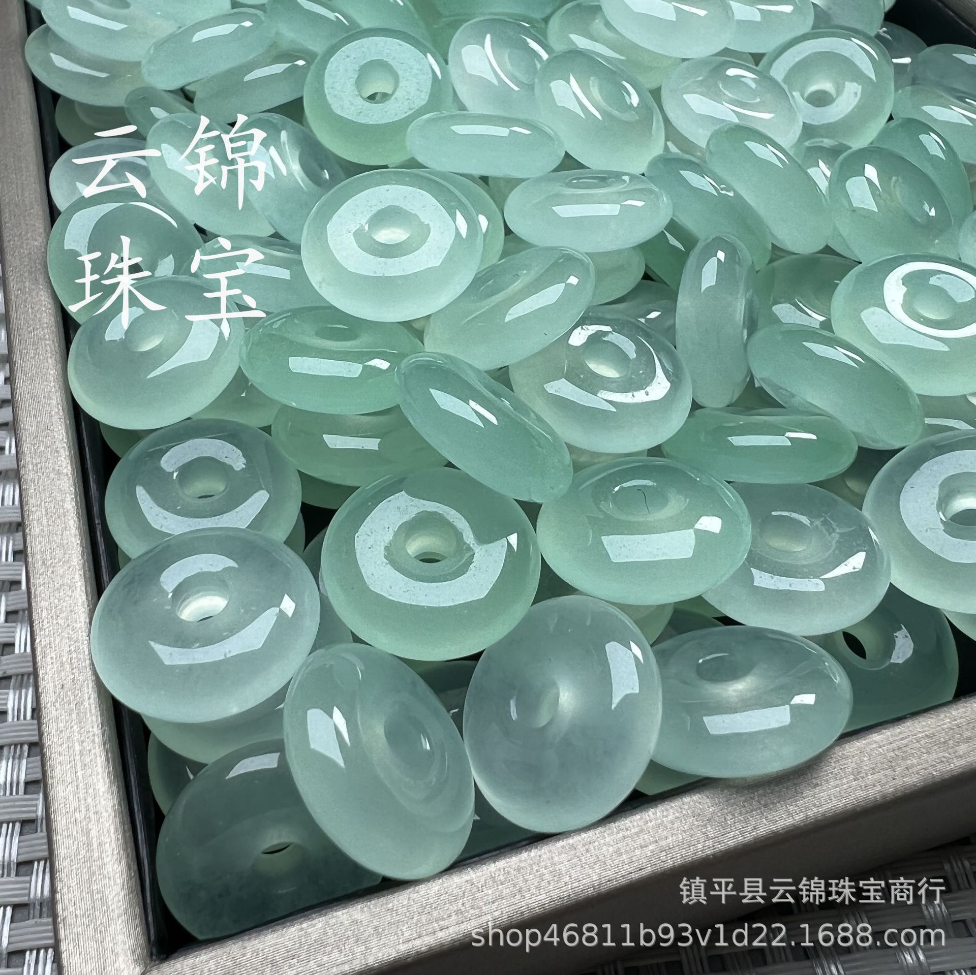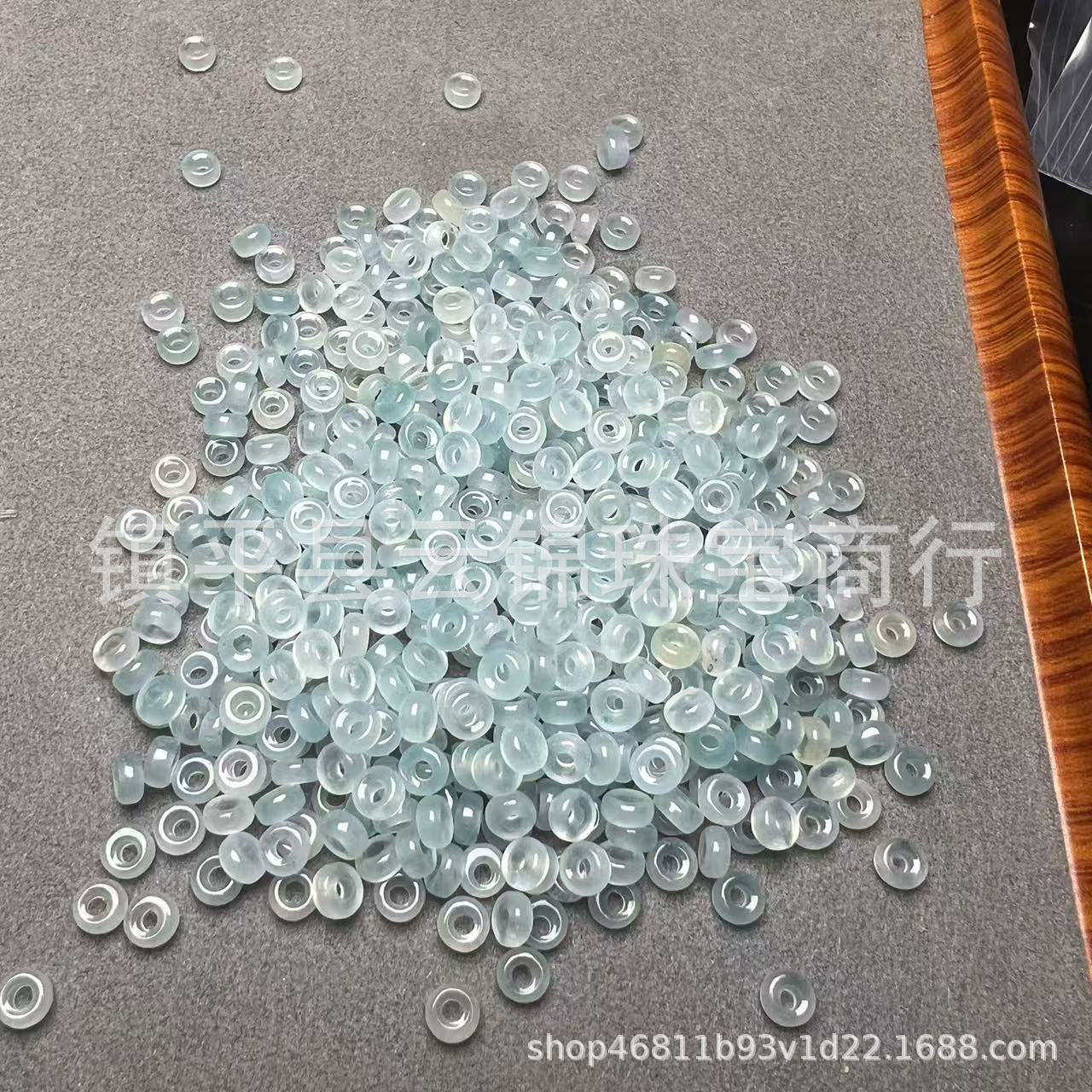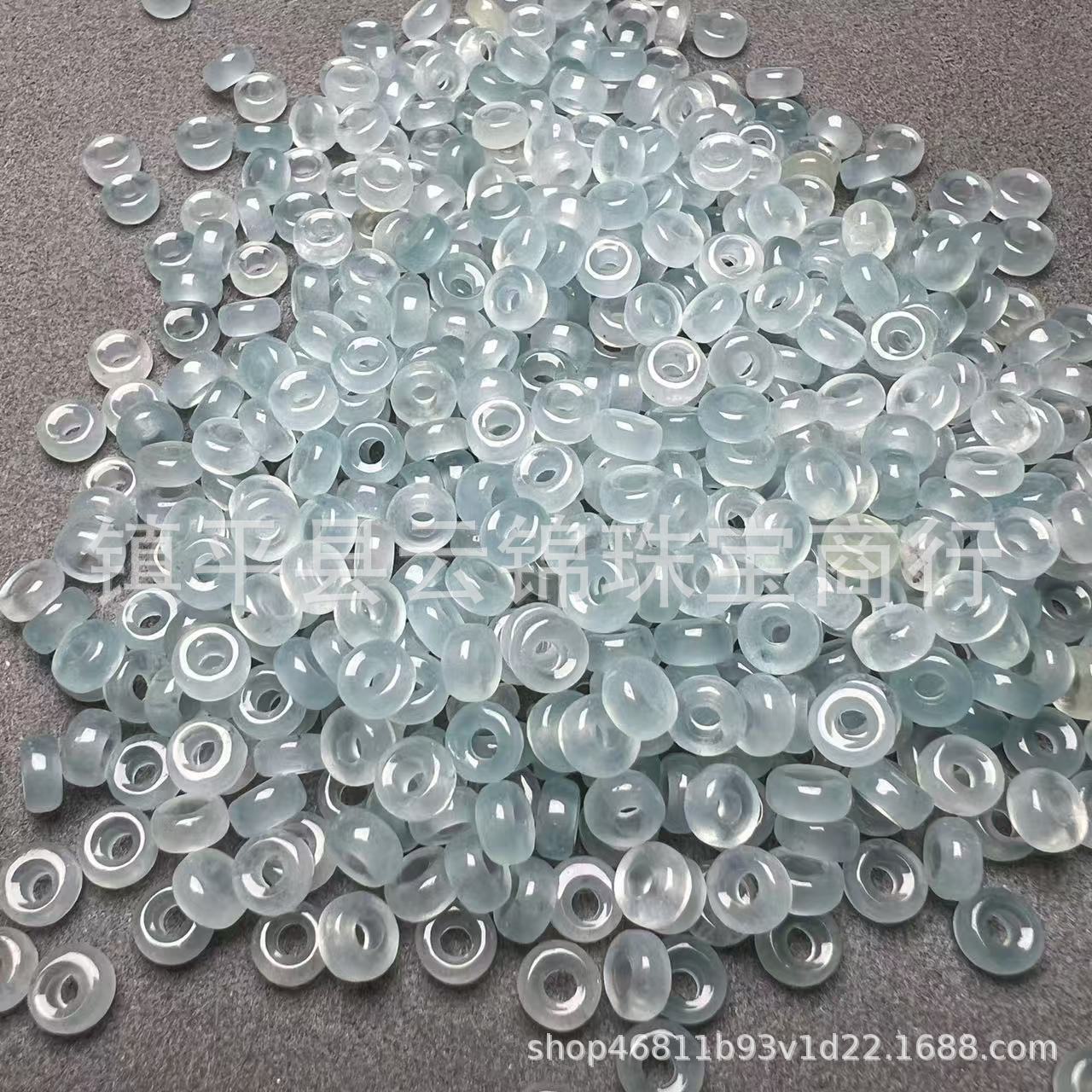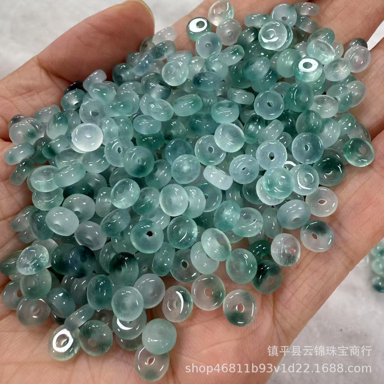 翡翠色飘蓝花小扣子算盘珠diy手链手串石英岩玉小平安扣隔片隔珠