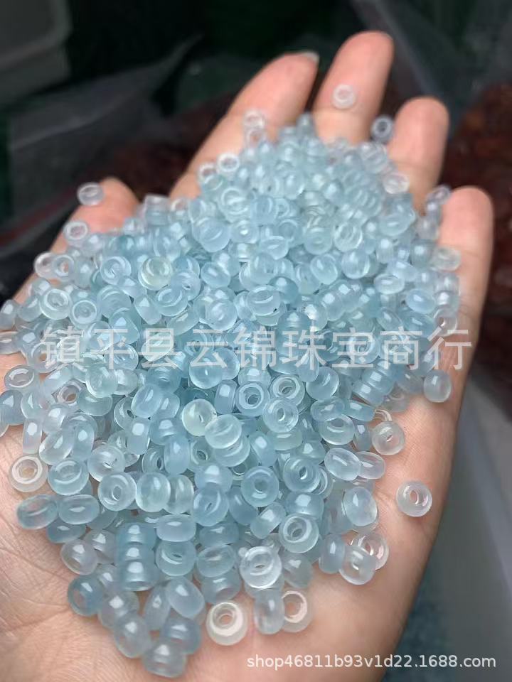 翡翠巴山氷透天青冷凍海藍宝色桶珠老型珠鼓珠散珠DIY部品アクセサリー部品