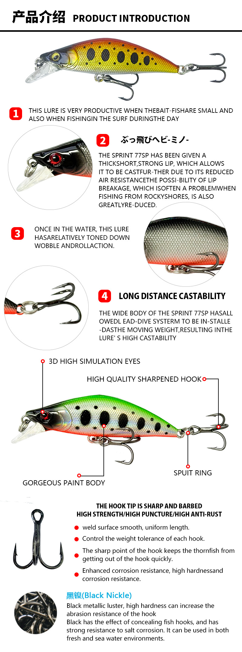 沈水ミノ偽餌45mm/3.8g渓水遠投路亜餌釣り口黒餌9137