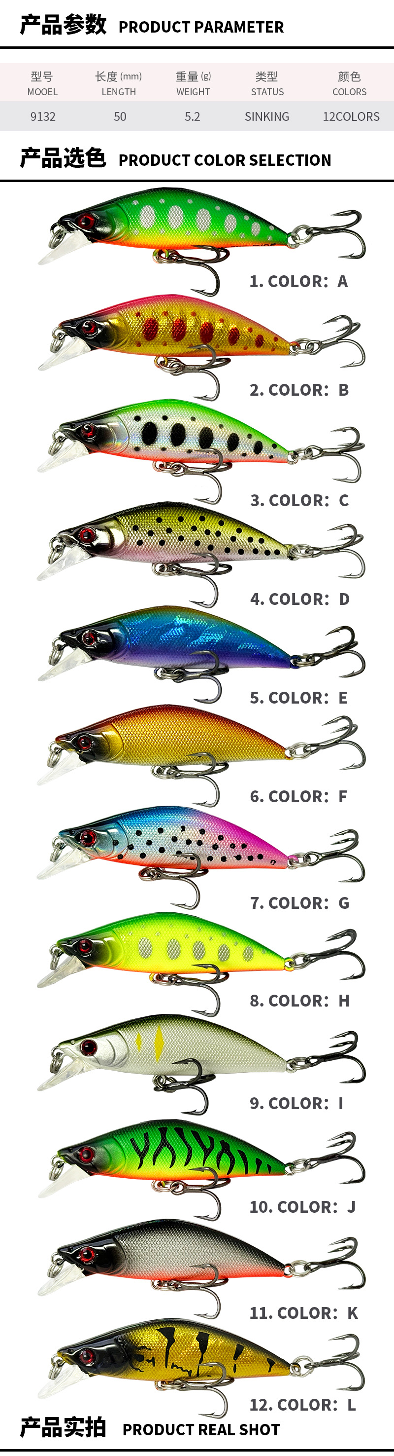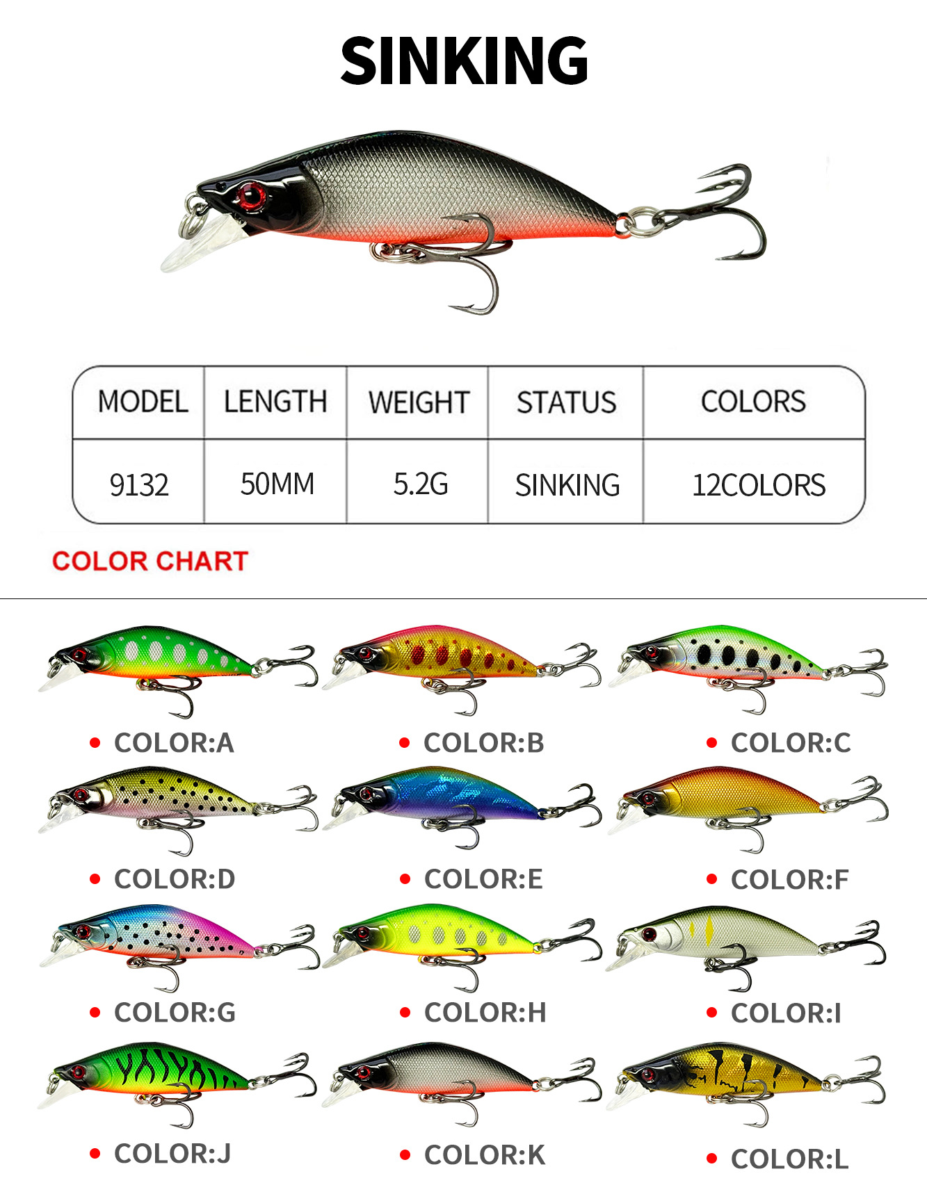渓流ミノ路亜餌沈水偽餌50MM/5.2G遠投口スズキミニ微物9132新色