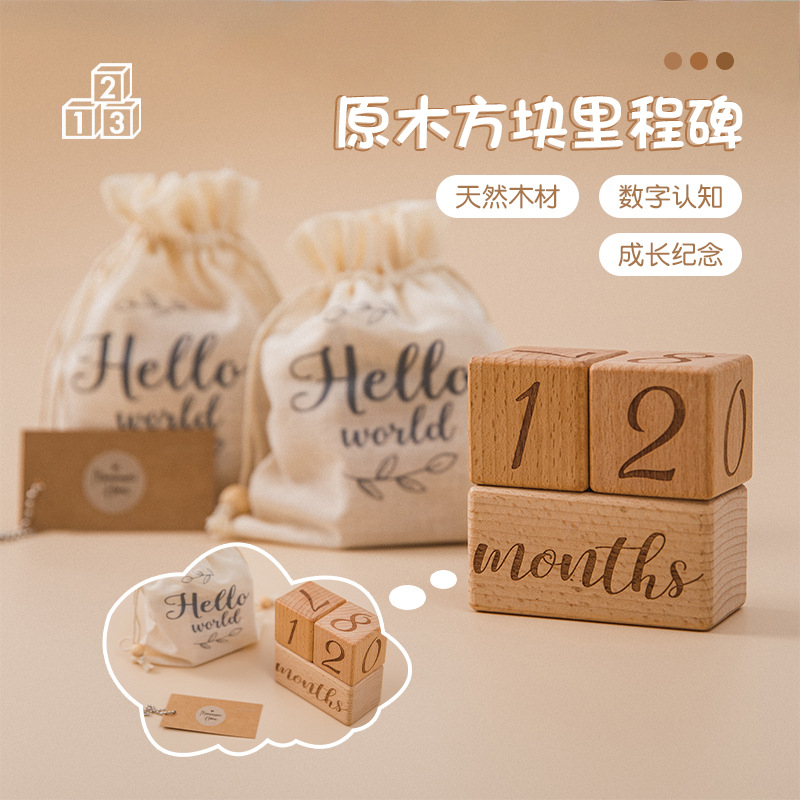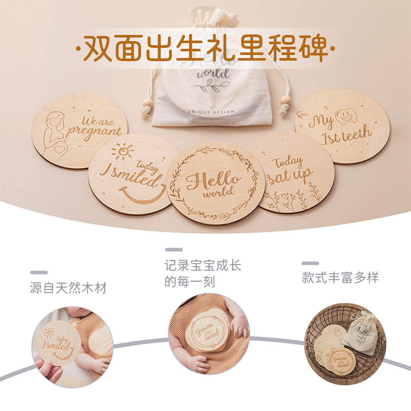 新生儿手抓木质儿童出生礼伴手礼双面印刷里程碑拍摄道具月份纪念