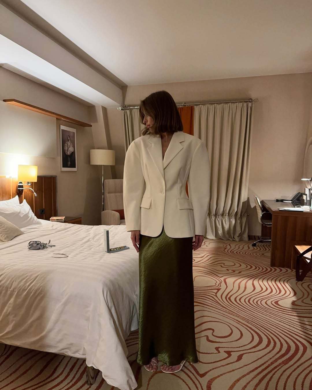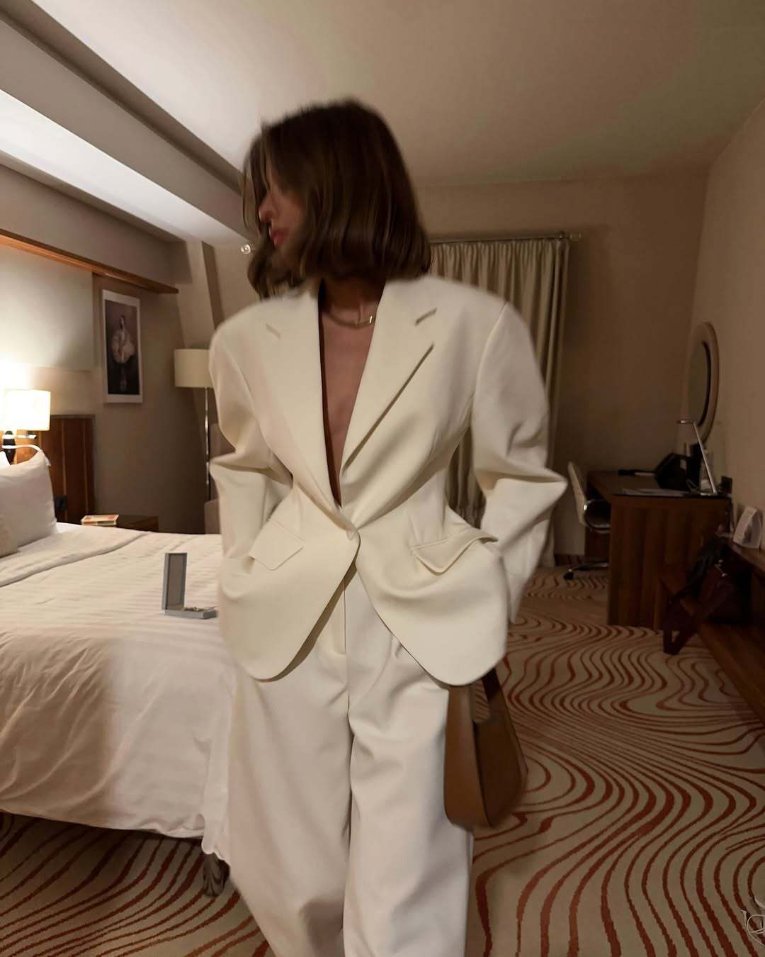 速卖通麂皮质感垫肩西服外套秋冬季宽松版型显气质复古时尚潮流女