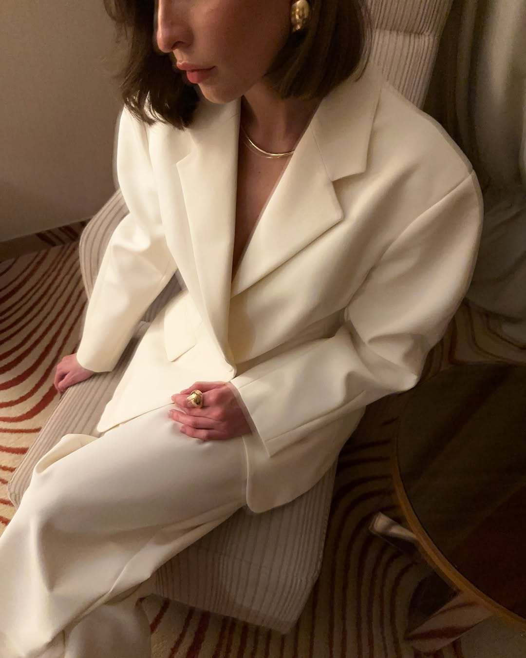 在庫あり - エレガントな通勤スタイルの長袖ストライプスーツスカーフジャケット2025欧米越境秋の新作