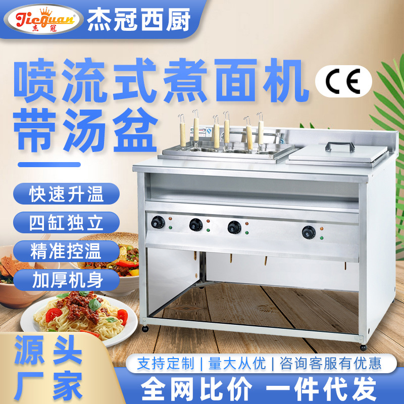 Jieguan 業務用 EH-876B スプレー式電気 6 ヘッド麺調理機、スープポット付き、麺とワンタンの煮込み用