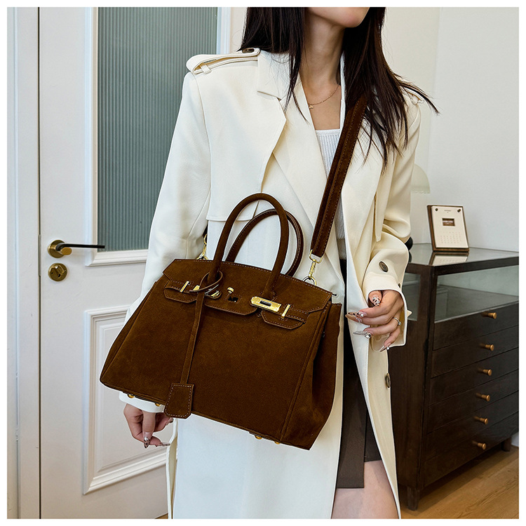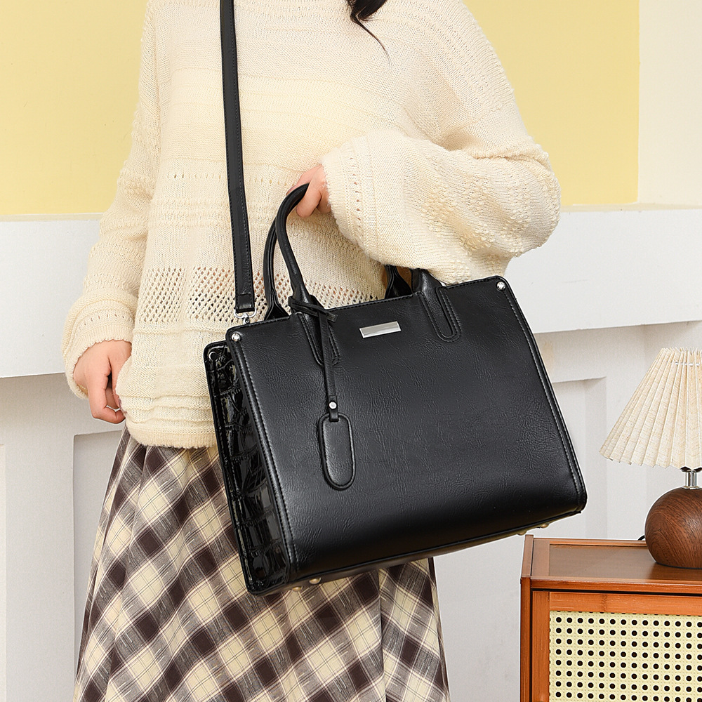 跨境经典2025秋冬新款油皮手提方包简约斜挎包单肩高端商务休闲包