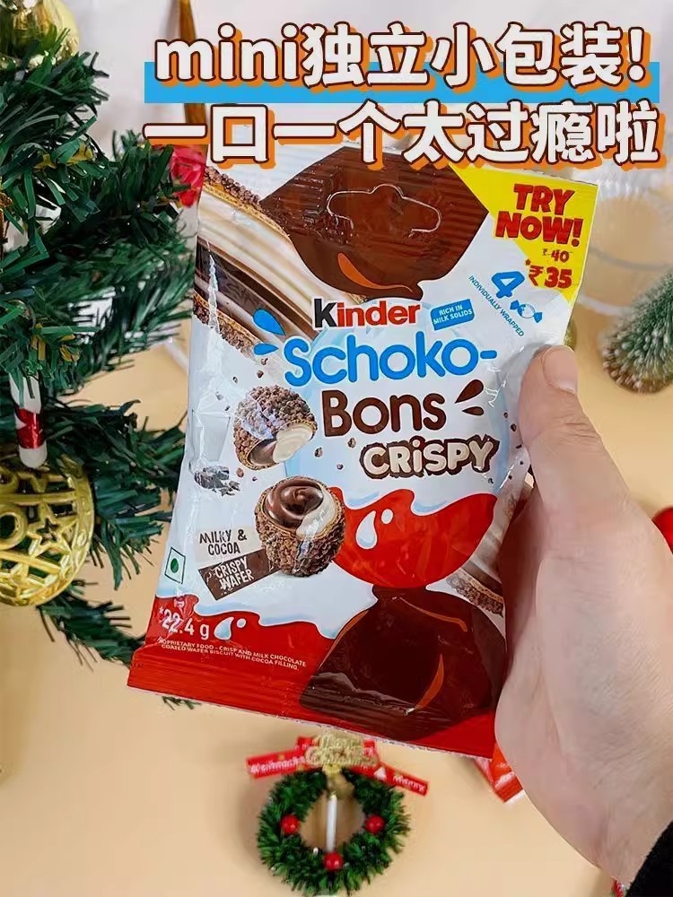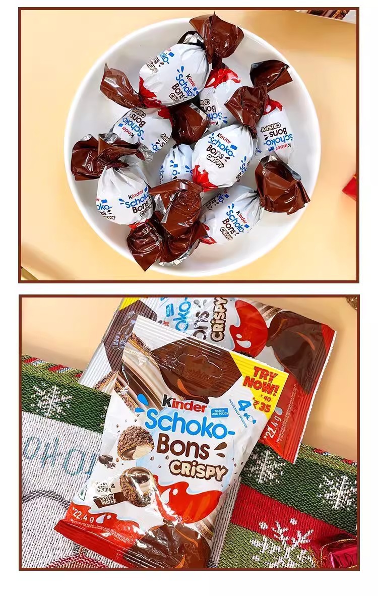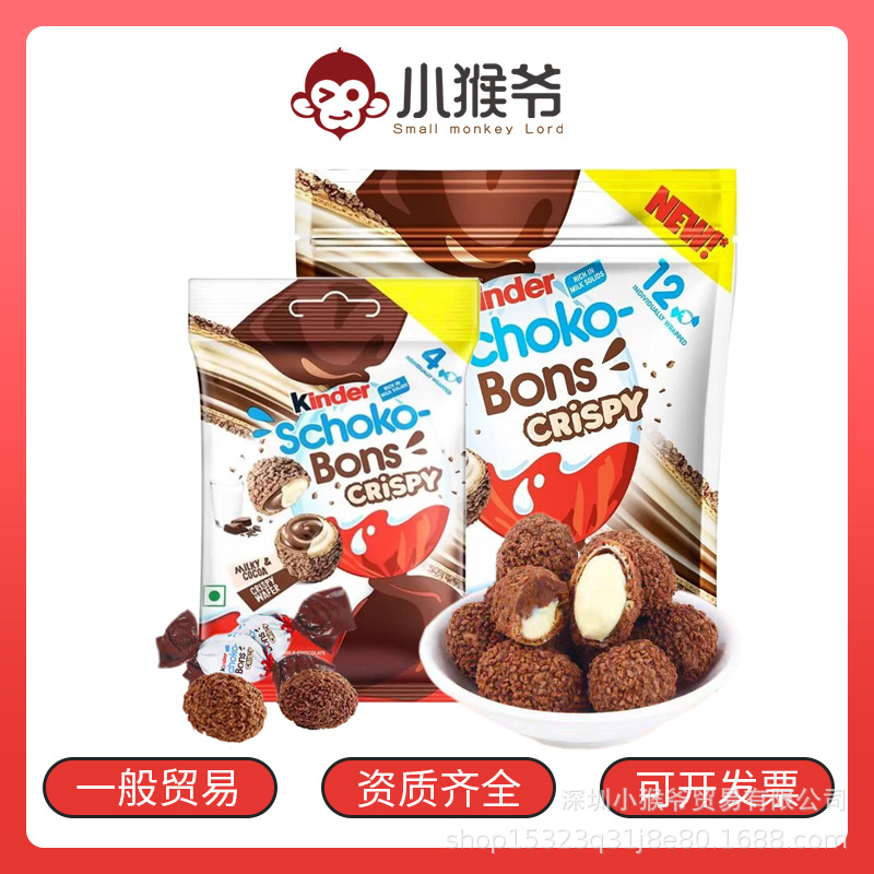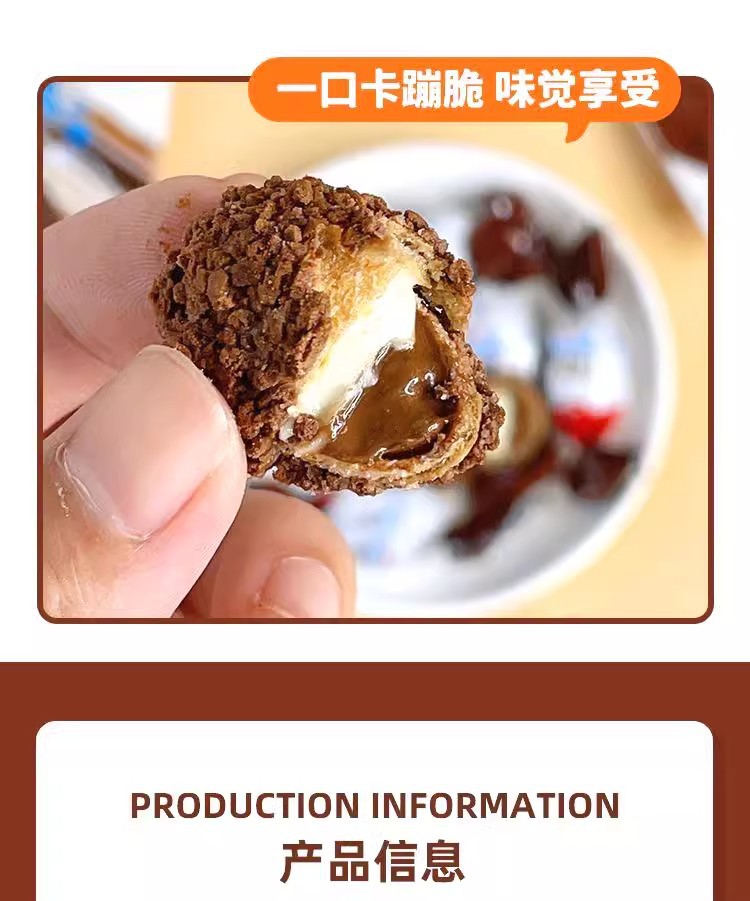 健达巧克力脆皮球:22.4g/袋。一箱96袋。