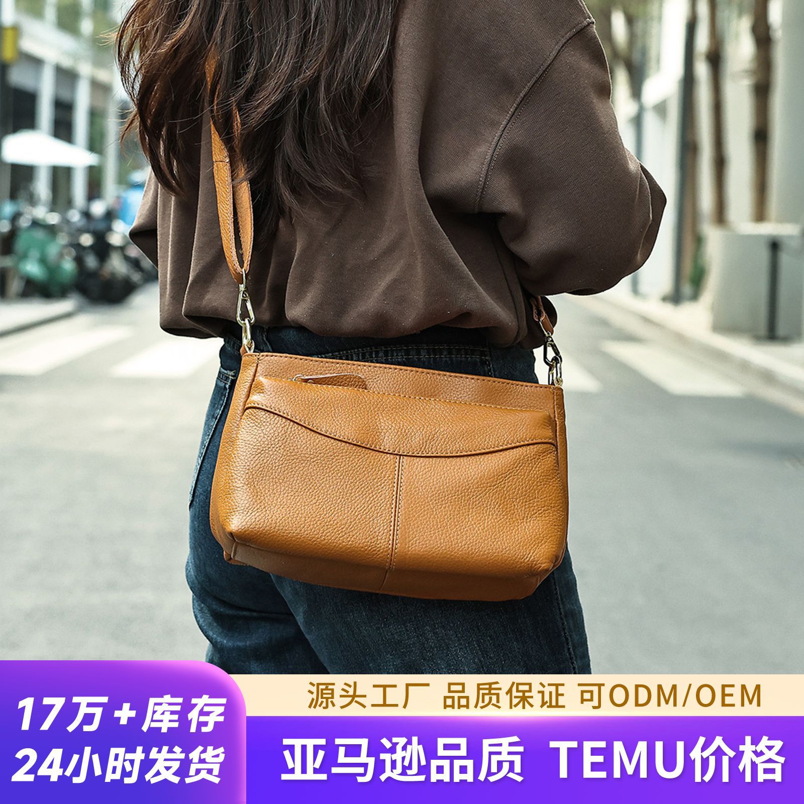 Temu人気トップ牛革ショルダーバッグバケツバッグ本革中年ママバッグ大容量シングルショルダーバッグ