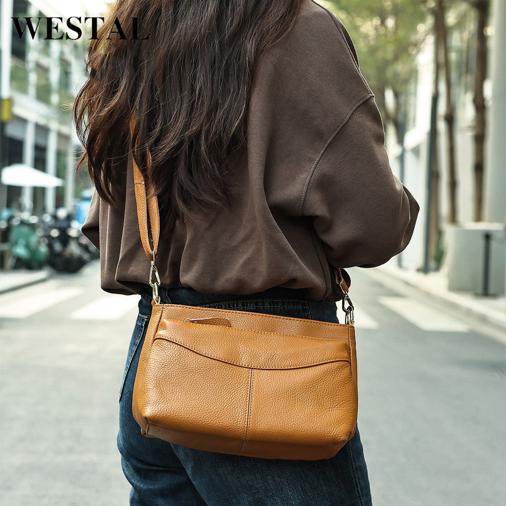 WESTALクロスボーダー人気本革レディースショルダーバッグ新作ハンドバッグトップ層牛革高級感斜め掛けショルダーバッグ