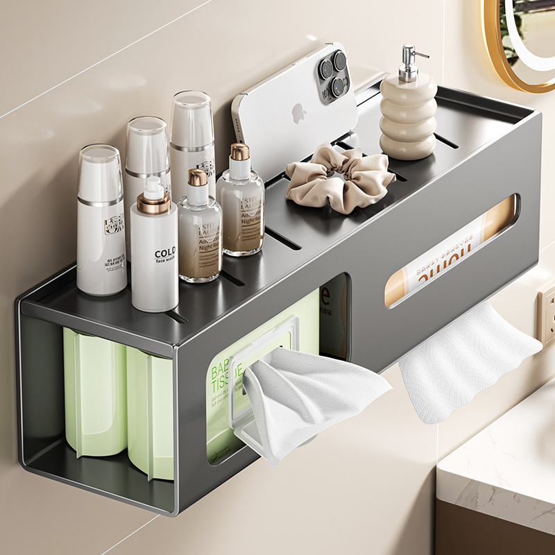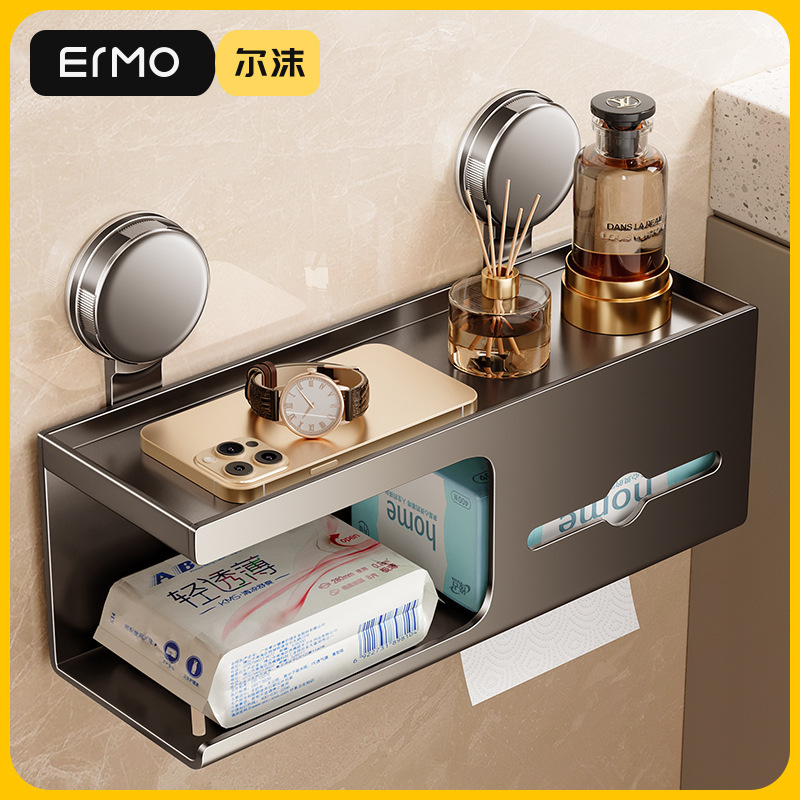 吸盤トイレティッシュボックス壁掛け式穴なしバスルームリビング引き出しトレイトイレットペーパーボックス洗面タオル収納ラック