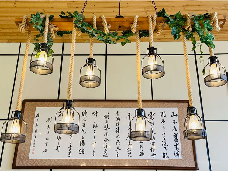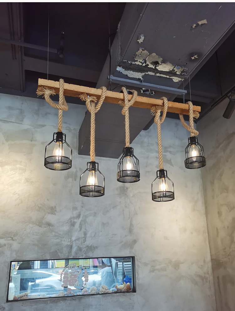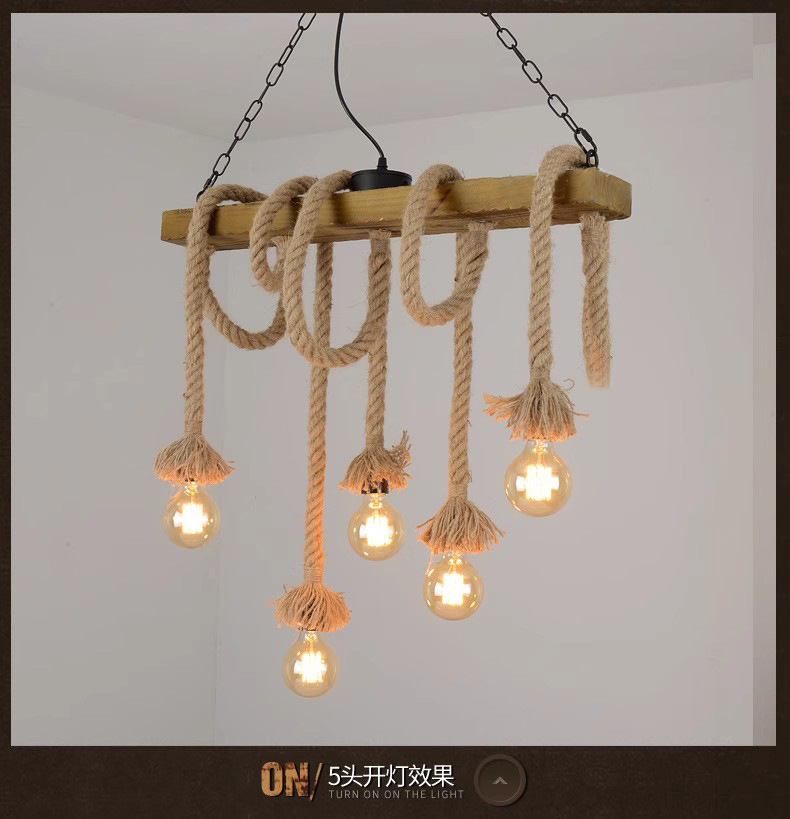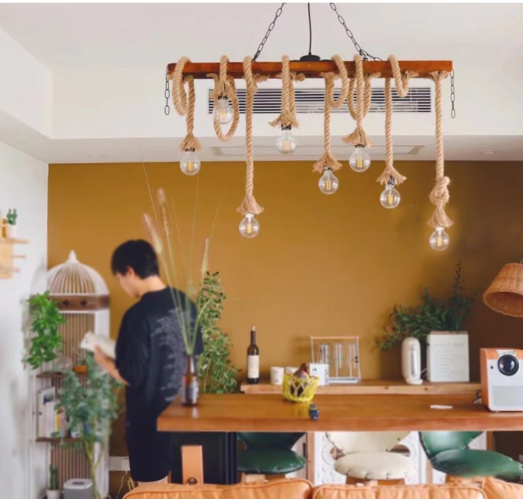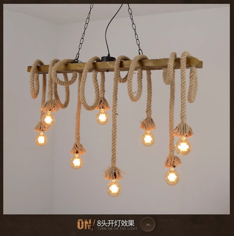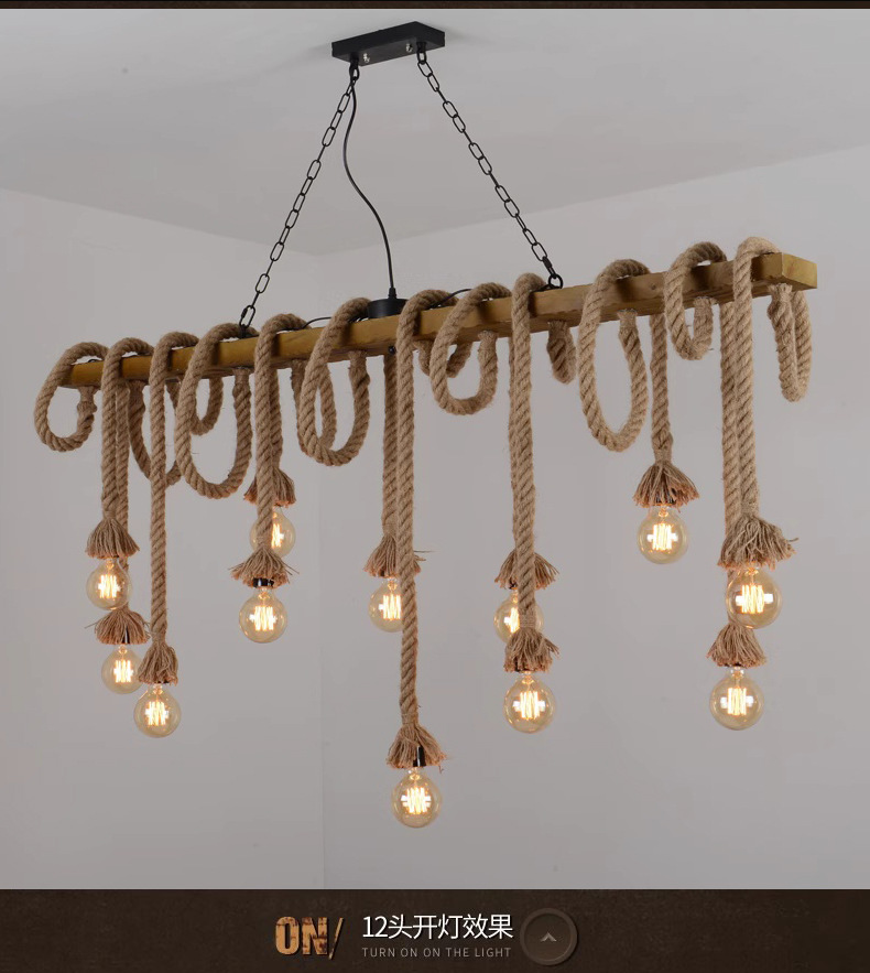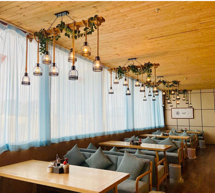 アメリカレトロ洋服店バーベキュー店商用麻縄長条灯工業風網カフェテーブルバー木芸シャンデリア