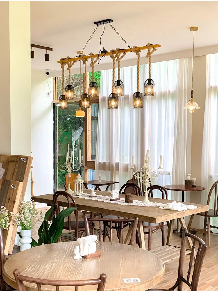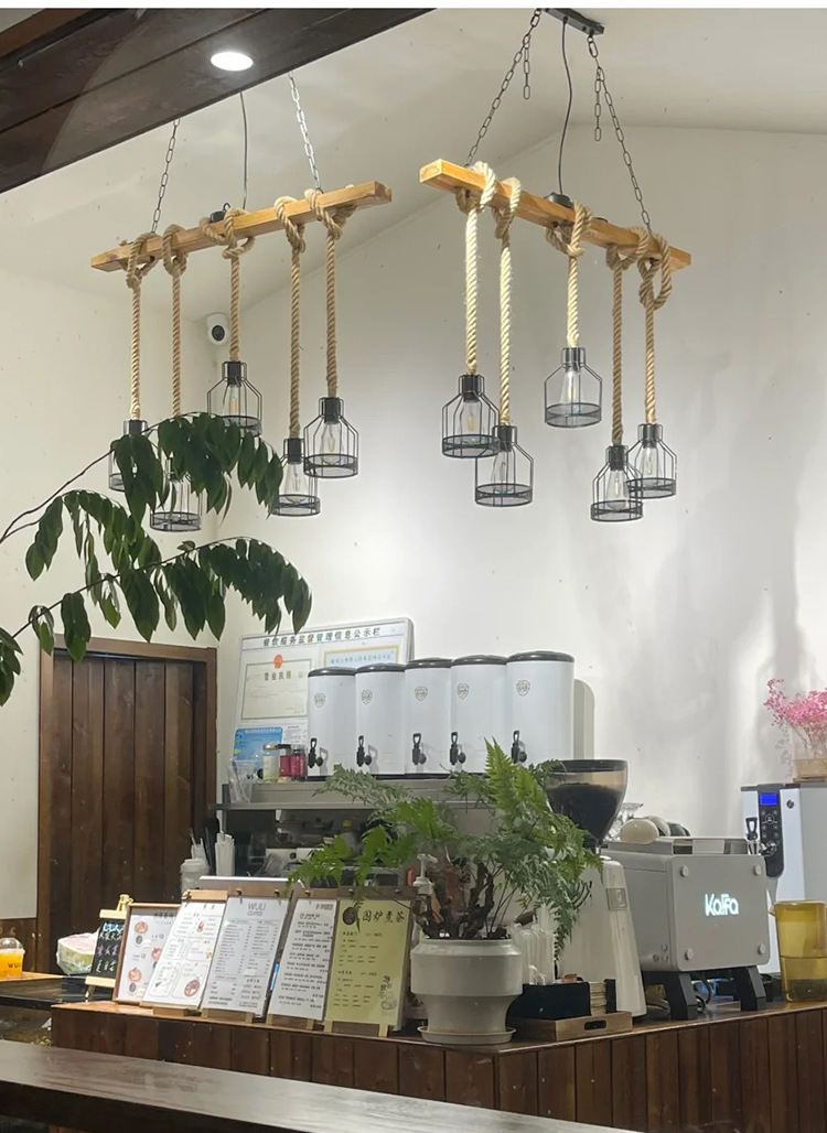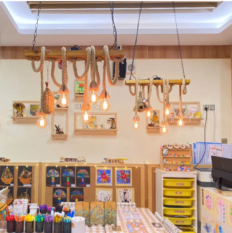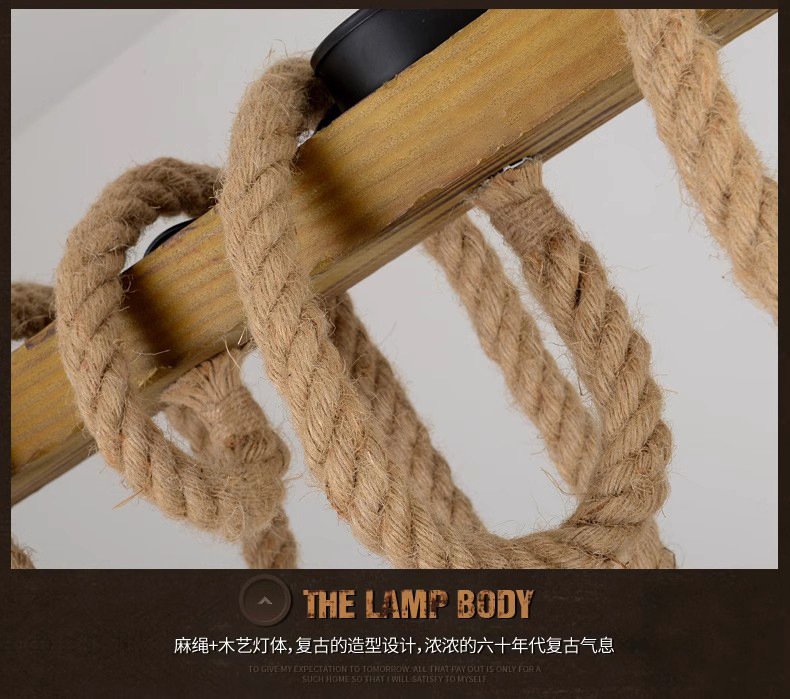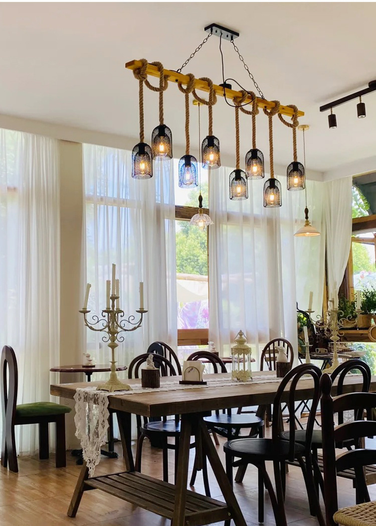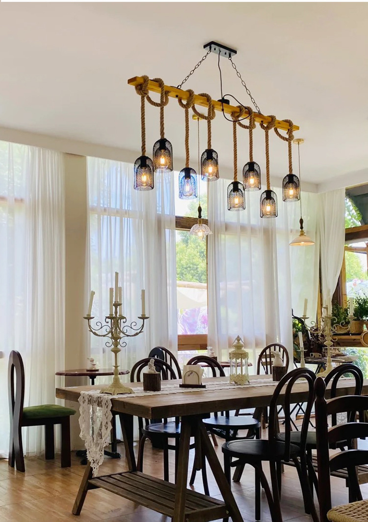 アメリカレトロ洋服店バーベキュー店商用麻縄長条灯工業風網カフェテーブルバー木芸シャンデリア