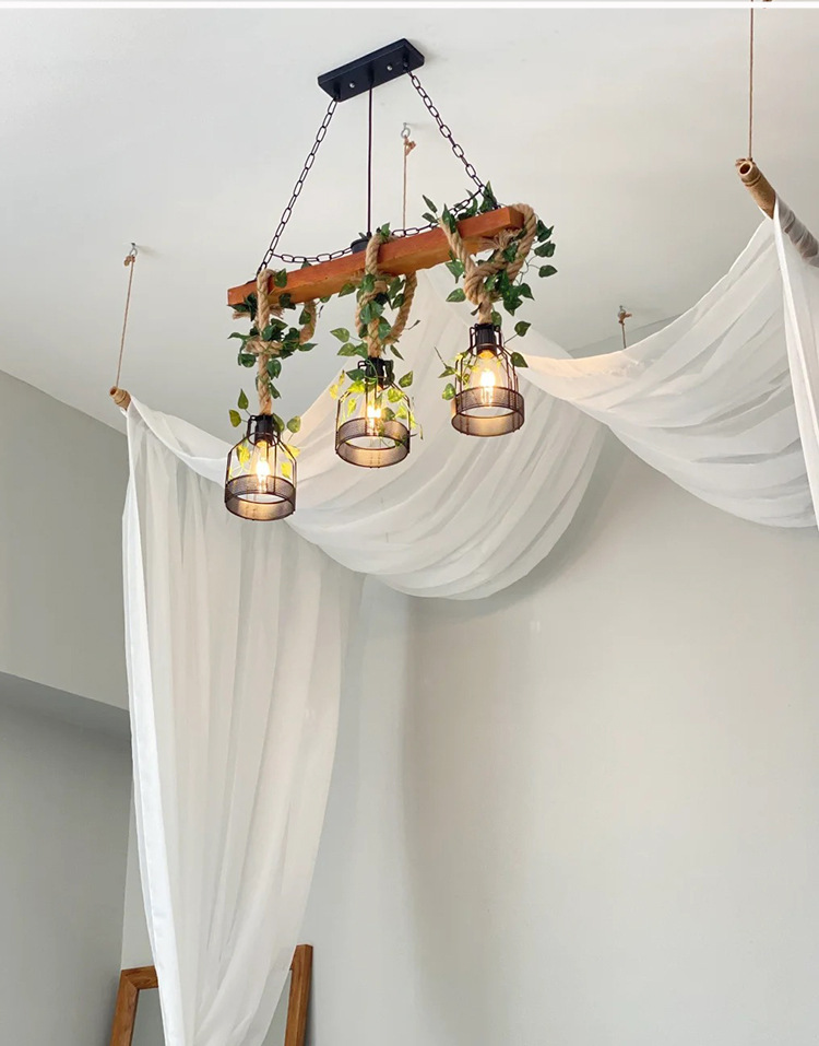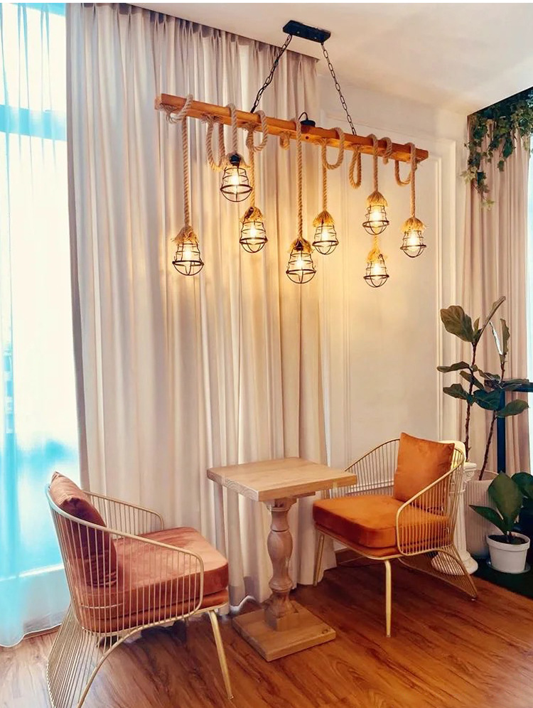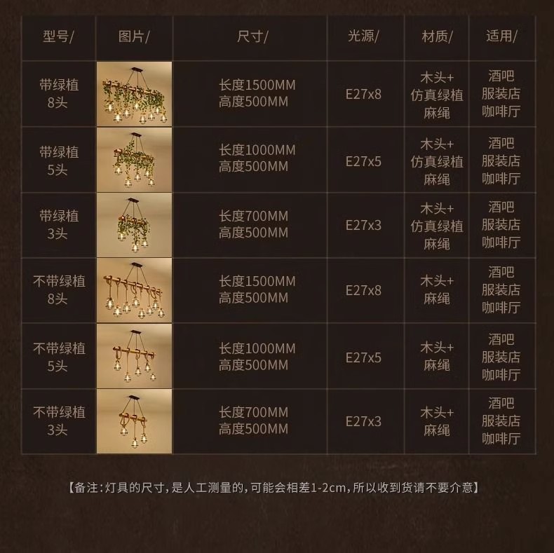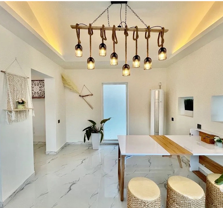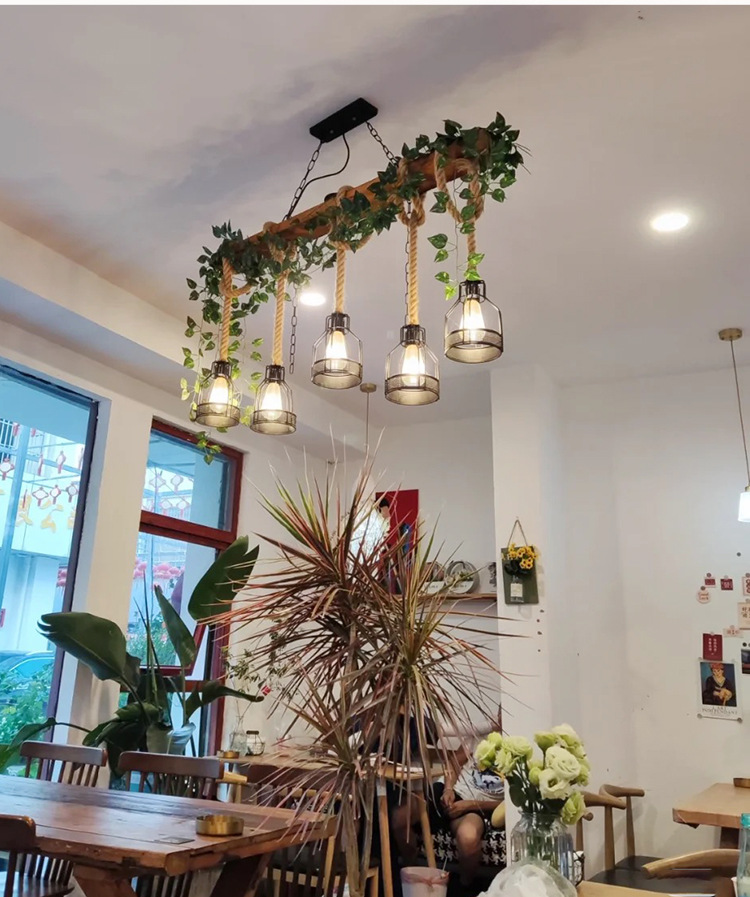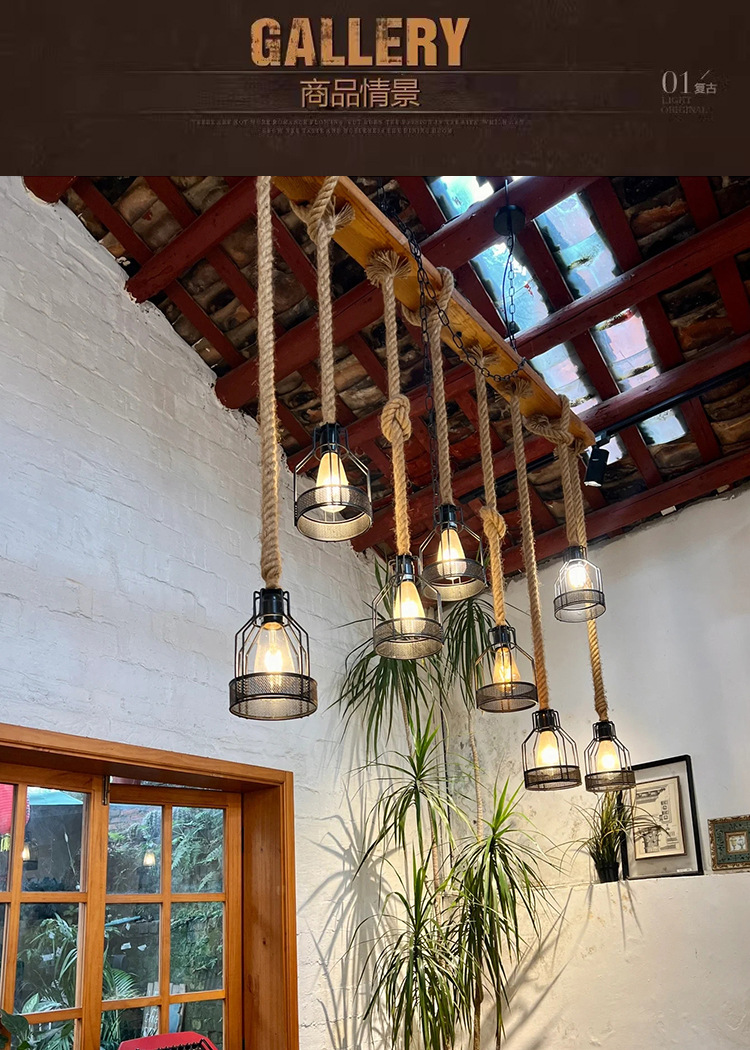 アメリカレトロ洋服店バーベキュー店商用麻縄長条灯工業風網カフェテーブルバー木芸シャンデリア