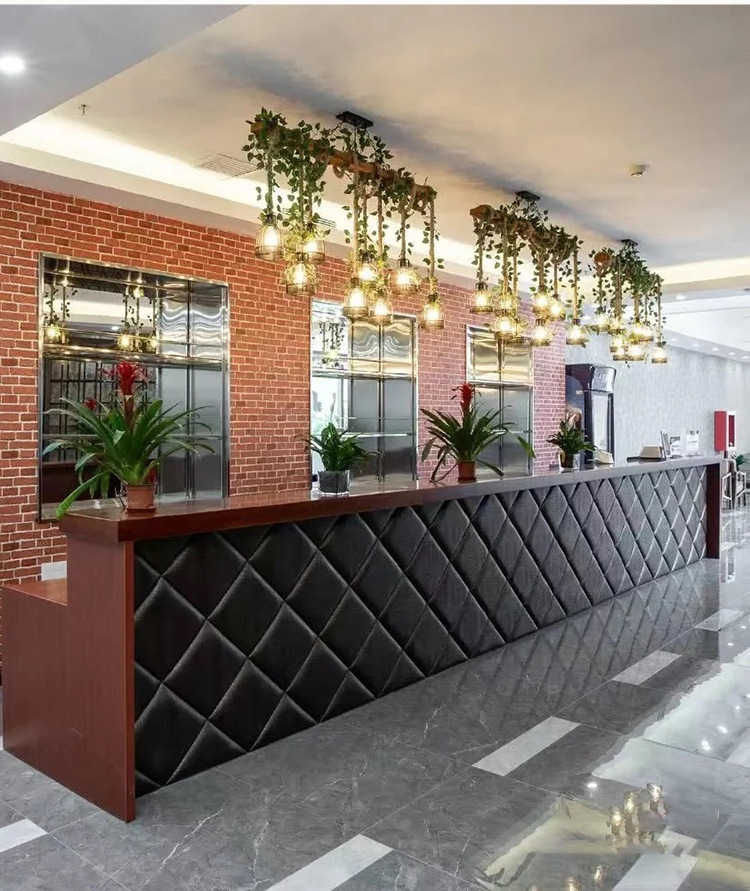 国境を越えたアメリカのレトロな実木の食卓はシンプルで長いシャンデリアカフェの茶室のカウンターの幅の圧力スポットライトの工業風です。