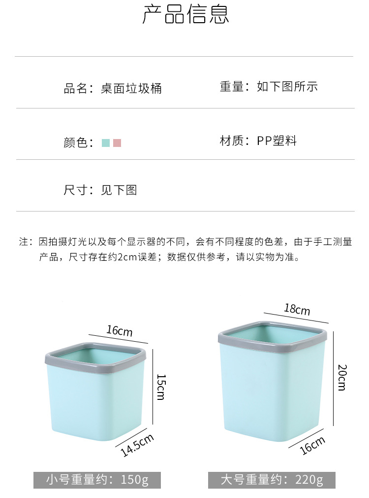 デスクトップのゴミ箱には、小型の角型ミニデスクトップのオフィス寮のベッドのゴミ収納紙かごがついています。