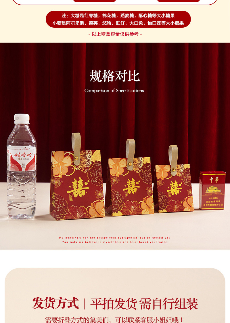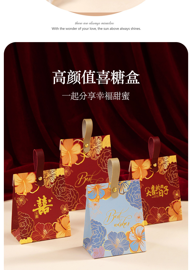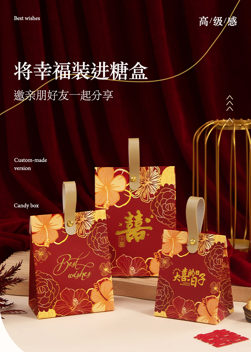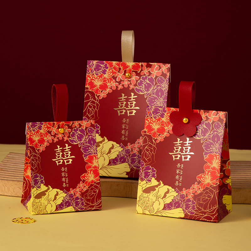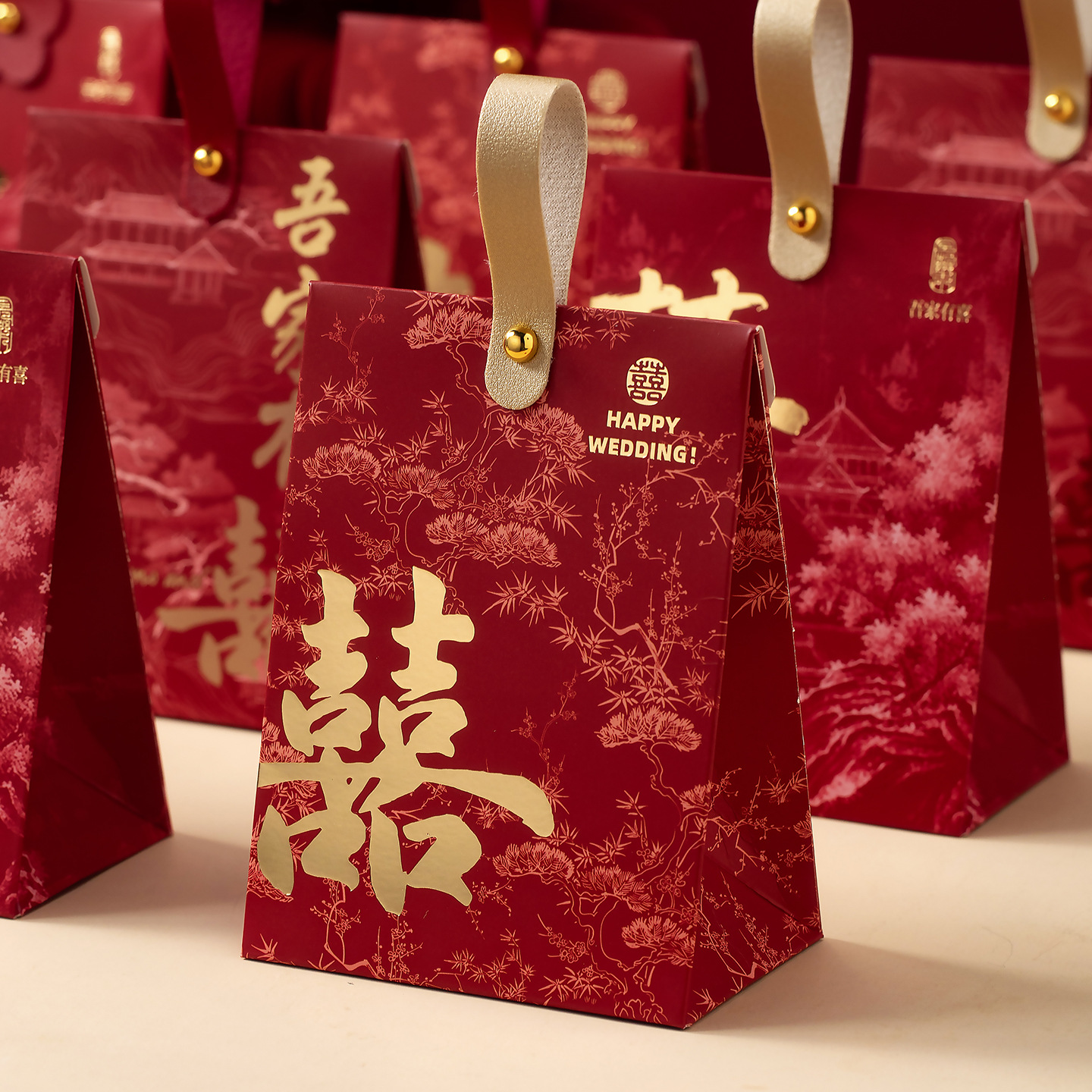 創意新型中国式高級感結婚手提げ喜糖箱喜糖袋結婚式高颜値包装糖果箱