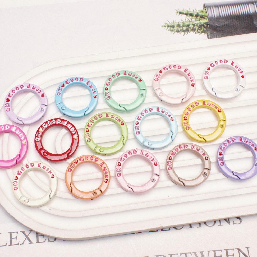 烤漆彩绘合金弹簧扣 圆形开口弹簧圈英文字母钥匙扣diy饰品配件
