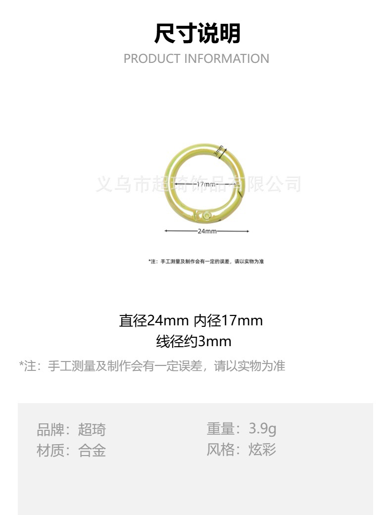 25mm美拉德色烤漆锌合金弹簧圈圆形挂扣挂件钥匙扣配件彩色弹簧扣