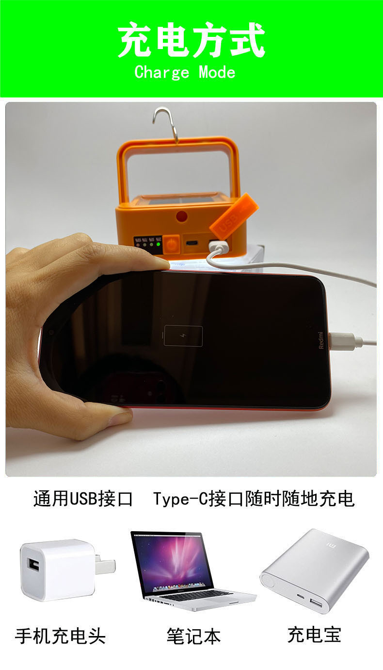 新型LED投光器太陽エネルギー手提げライトUSB充電屋外キャンプ露店緊急照明灯