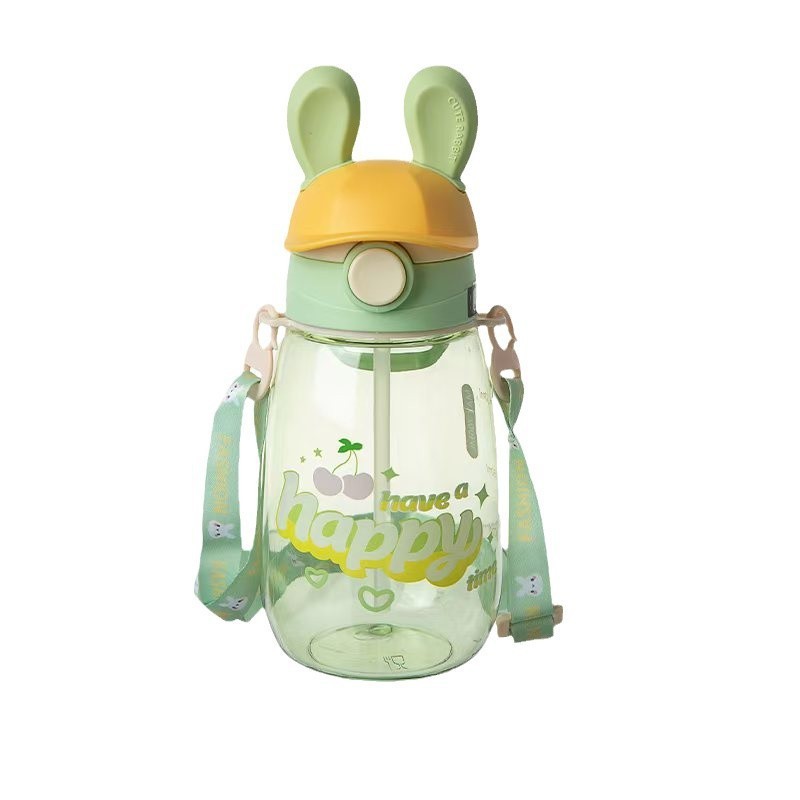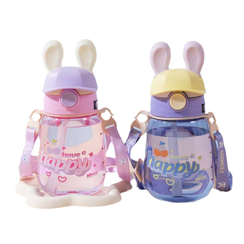 創意子供のプラスチックカップと水筒を持っています。幼稚園の学生の可愛い水コップのウサギのストローカップ2025新型です。