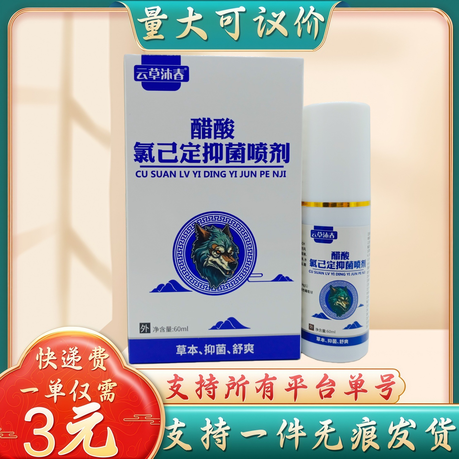 云草沐春醋酸氯已定抑菌喷剂60ml瓶