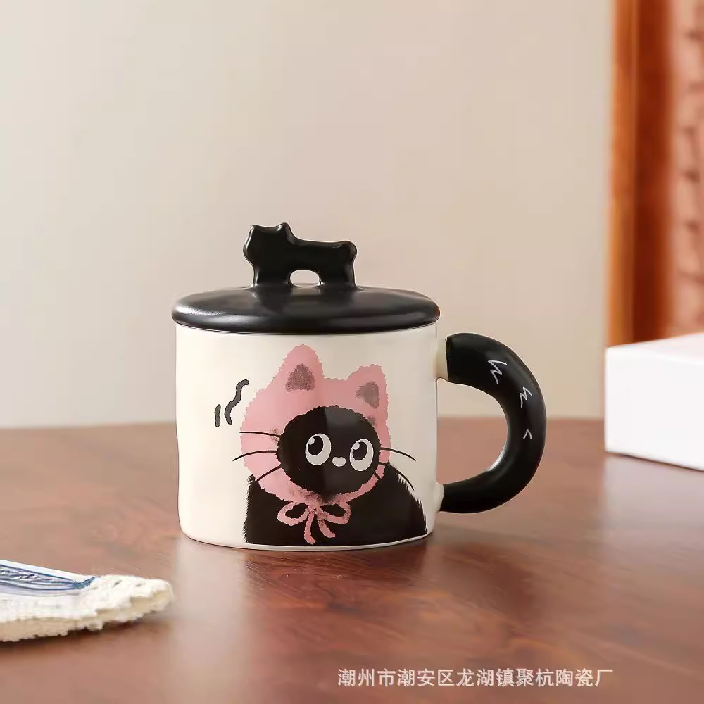 かわいい猫陶磁器カップ蓋付きマグカップお土産家庭用親友プレゼント誕生日プレゼントコーヒーカップ