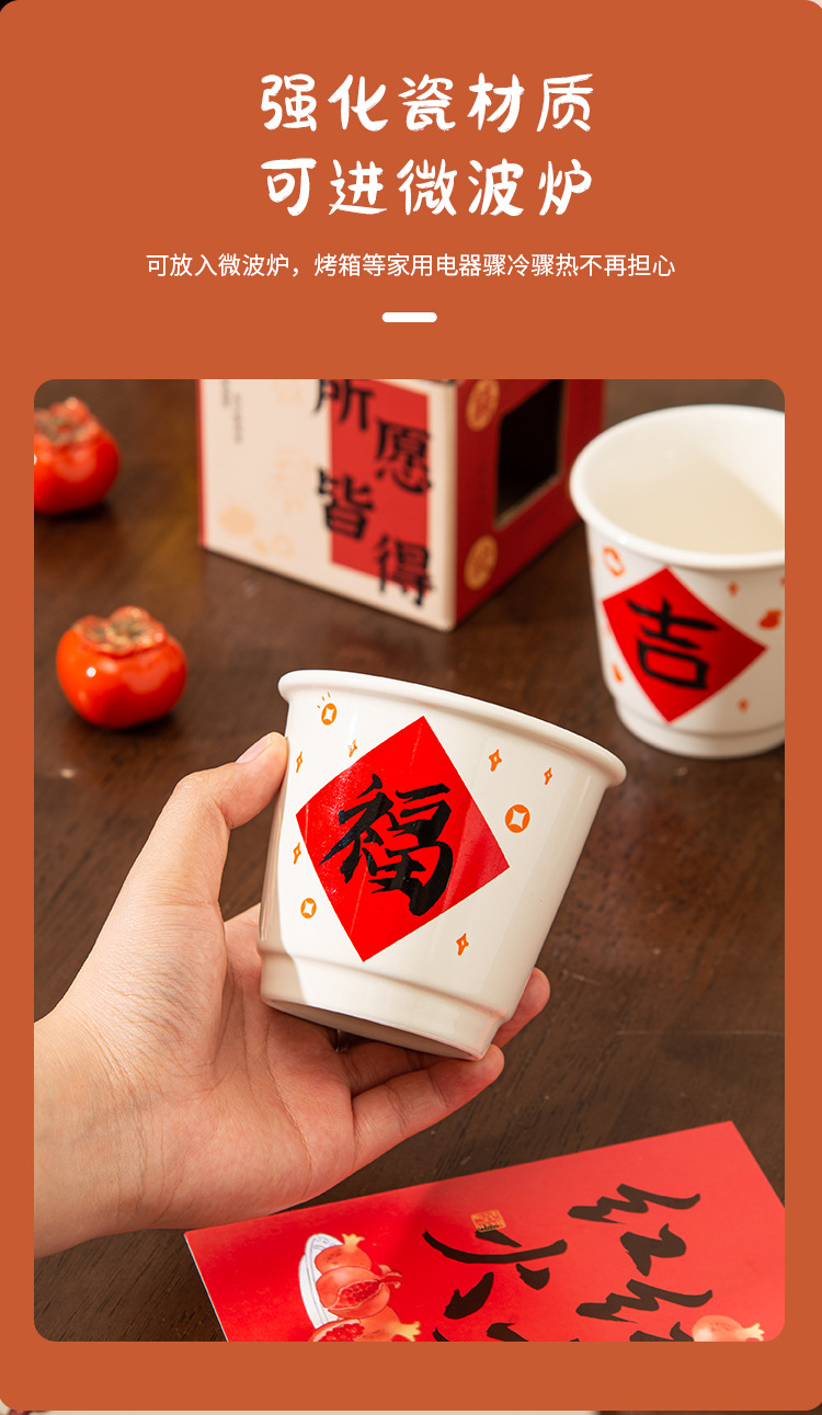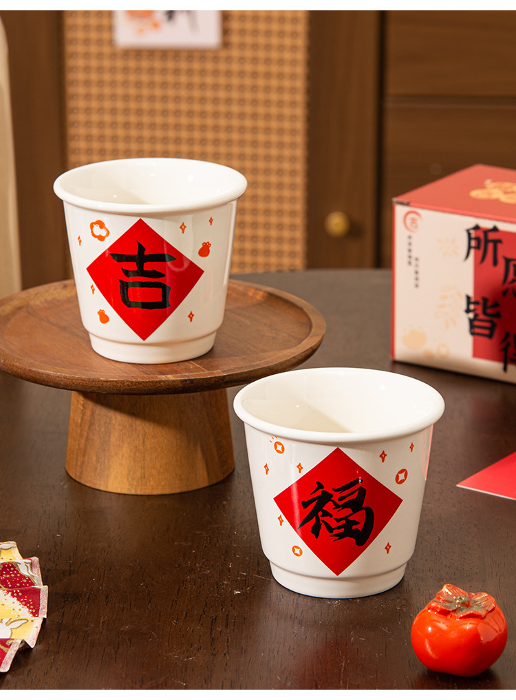 新年のお祝いの文字の陶磁器の手作りの杯の新しい中国式のコーヒーの杯の朝食の牛乳の杯のお土産の贈り物