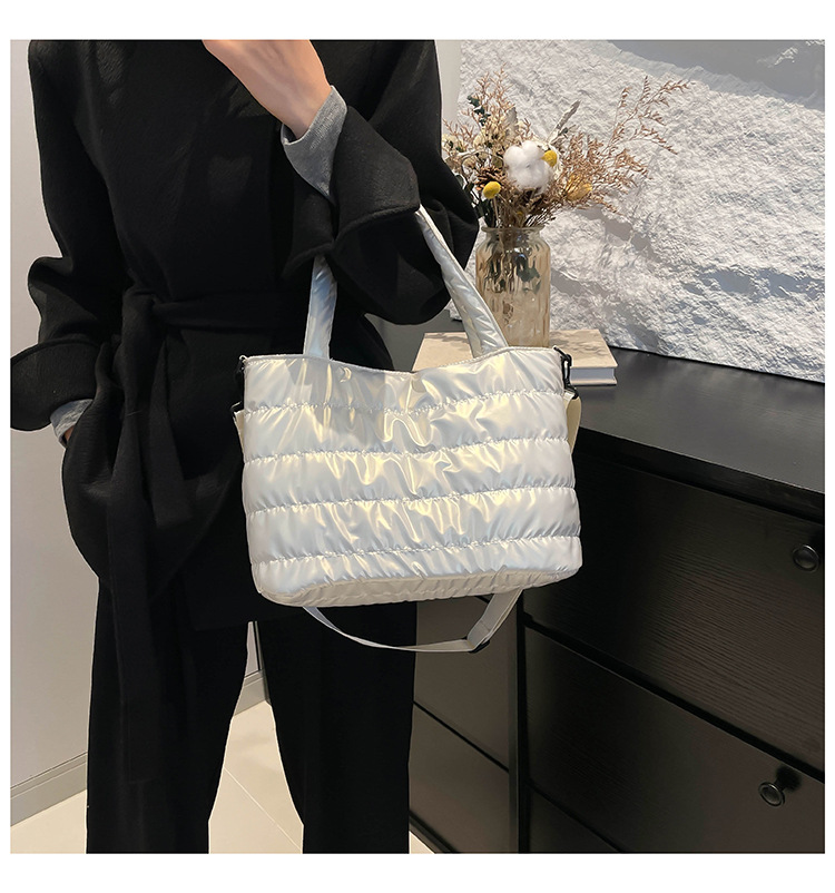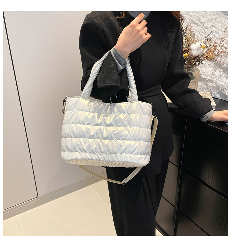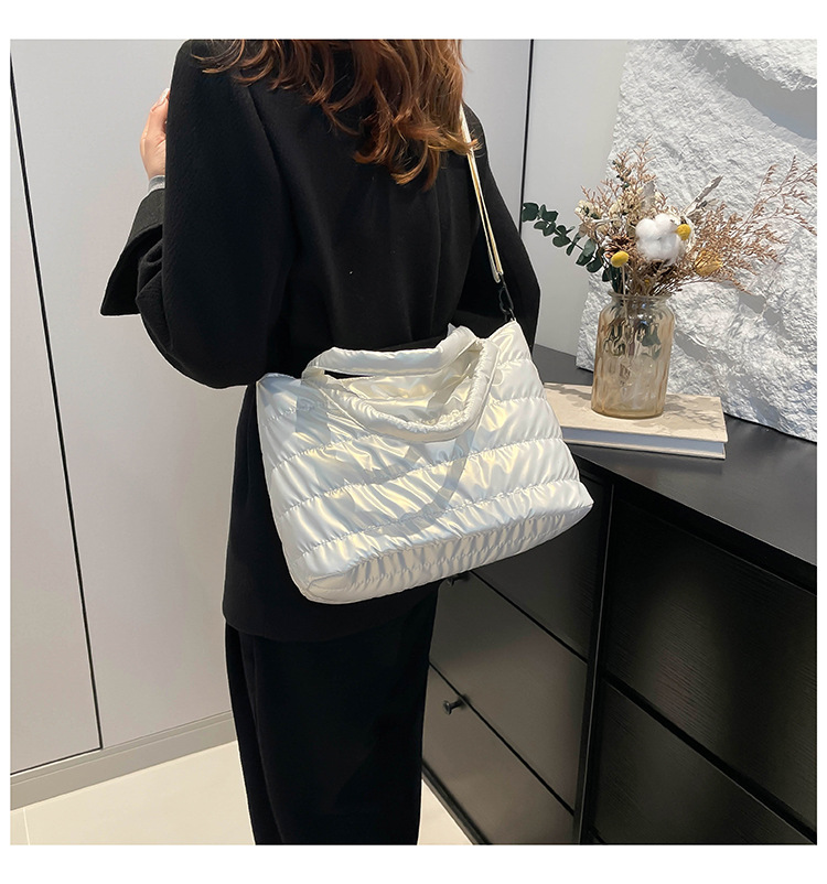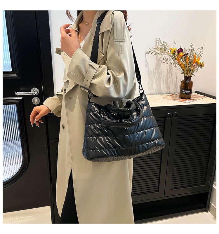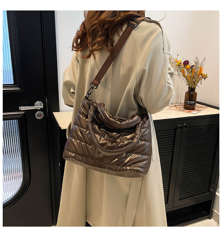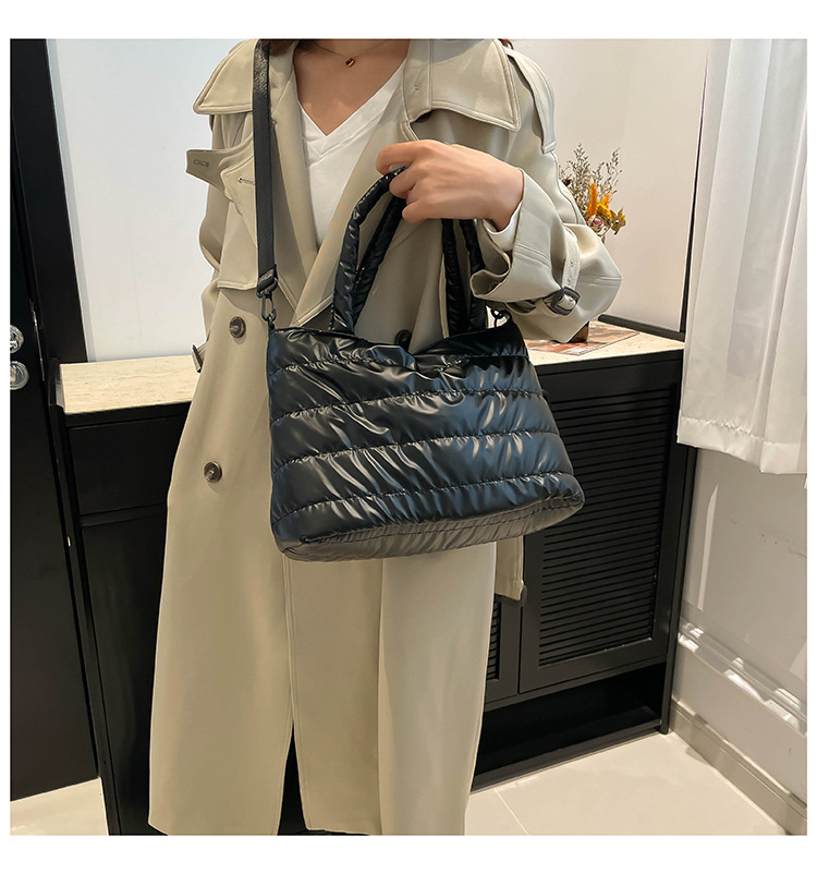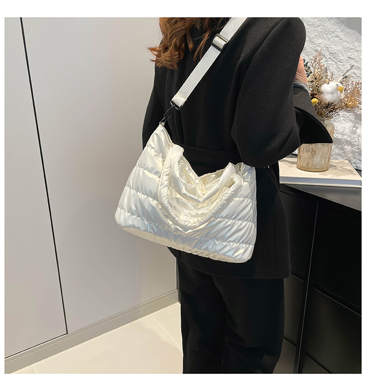 2024冬のカジュアルで怠惰な風の洋風の手持ちの広い肩のベルトの斜めのショルダーバッグの女性の宇宙綿の刺繍の線の大容量の純色