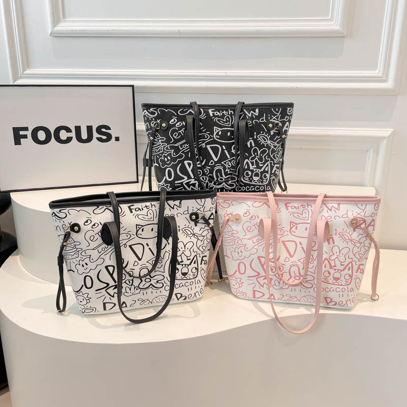 韩系大容量托特包时尚潮流印花个性休闲手提包女大学生上课单肩包