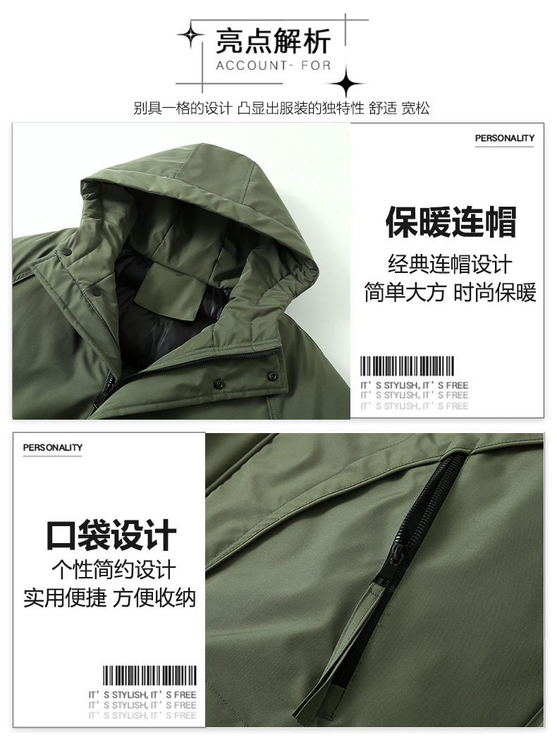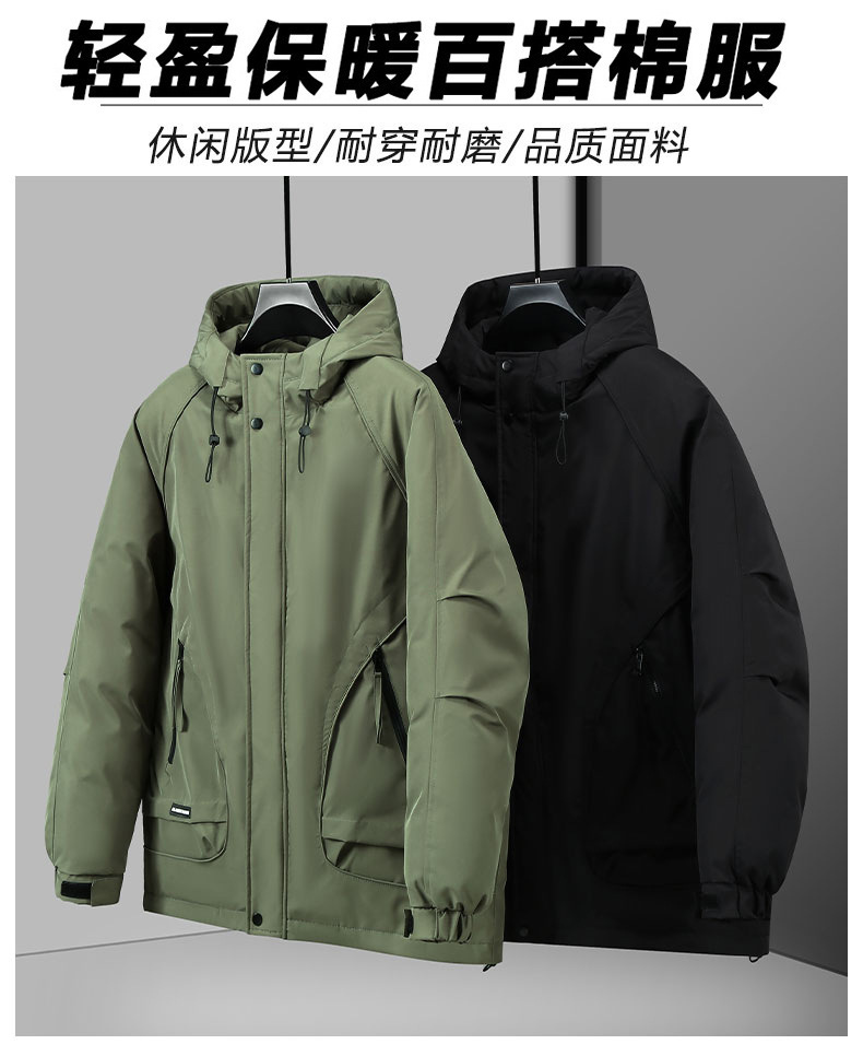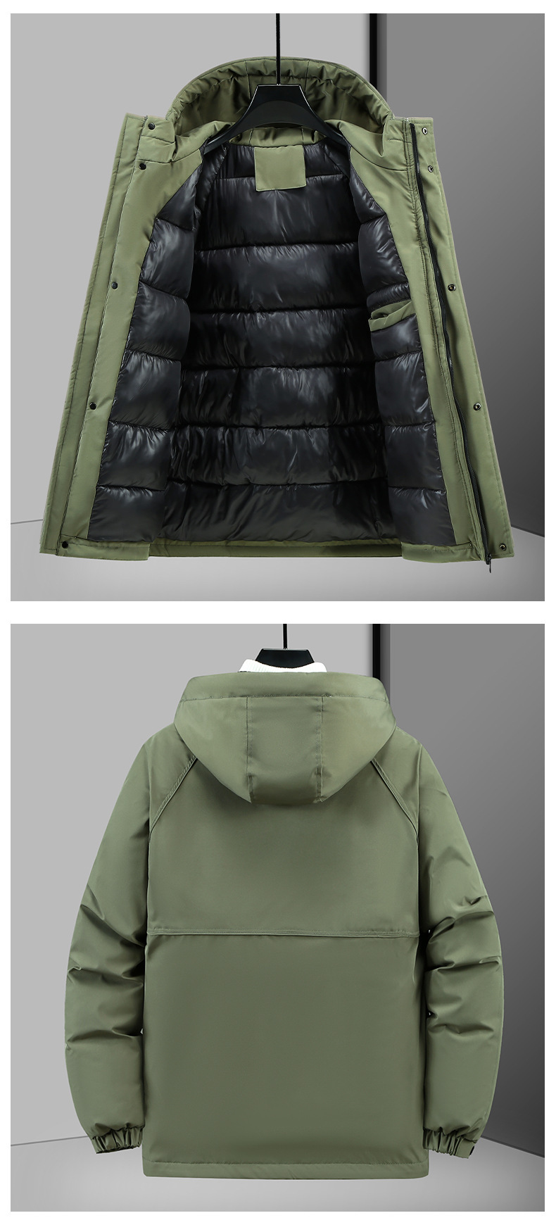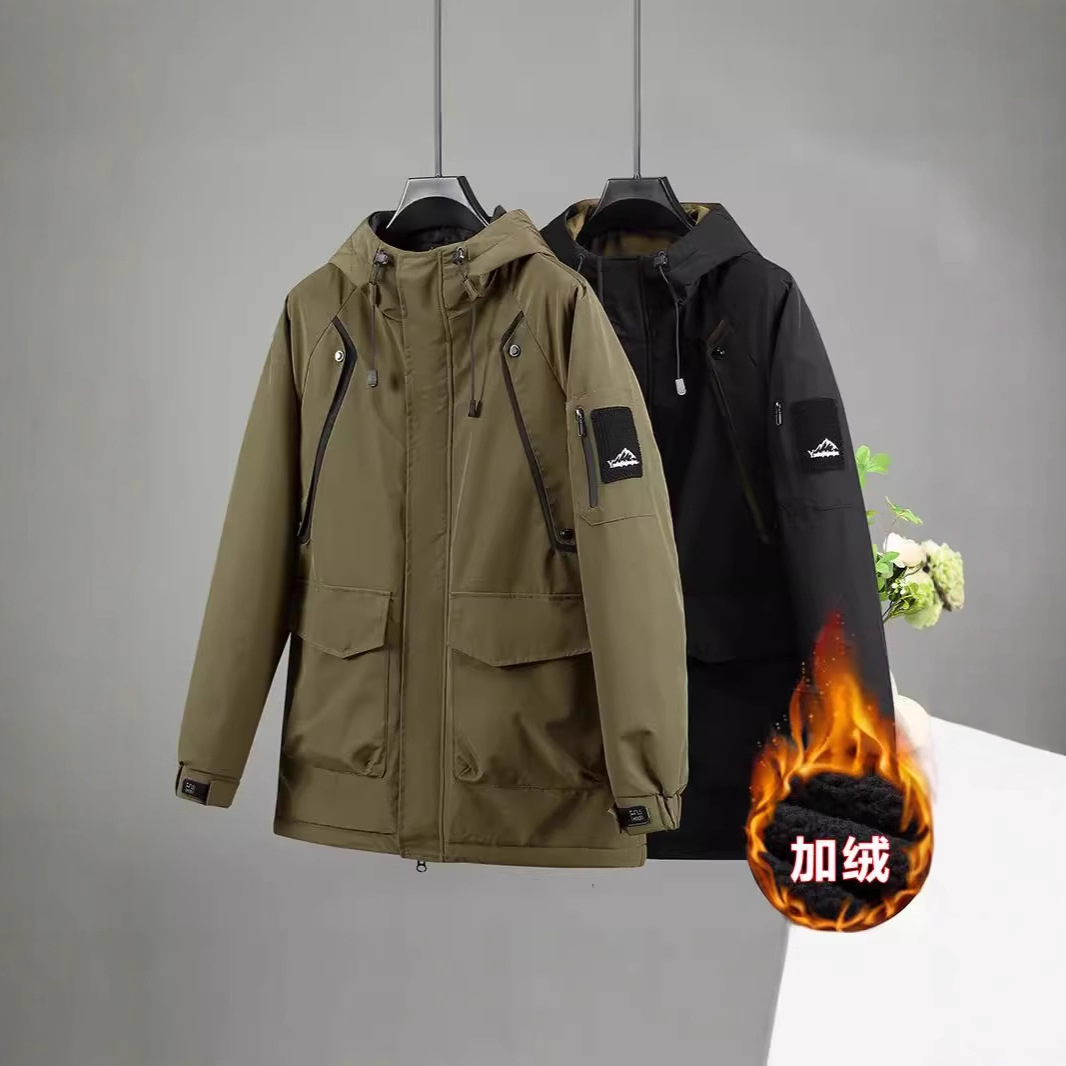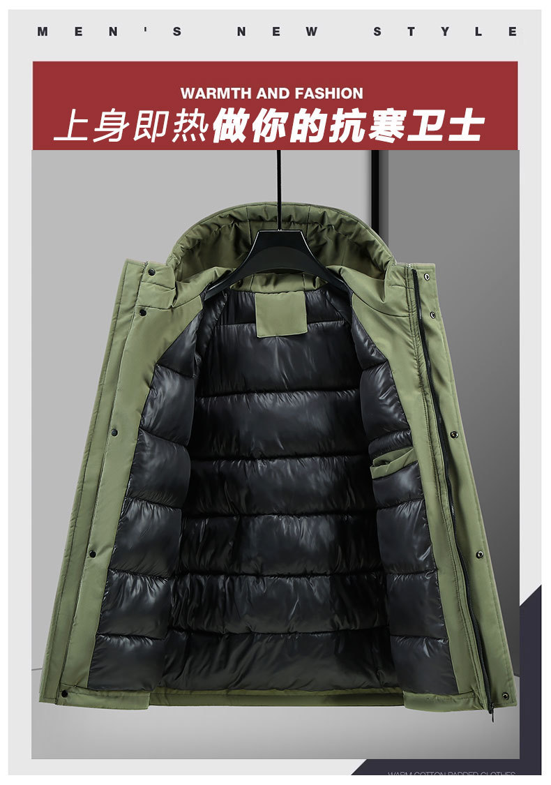 2025新加絨三防冬男性綿服の中の長さは帽子と肥料が厚くなっています。